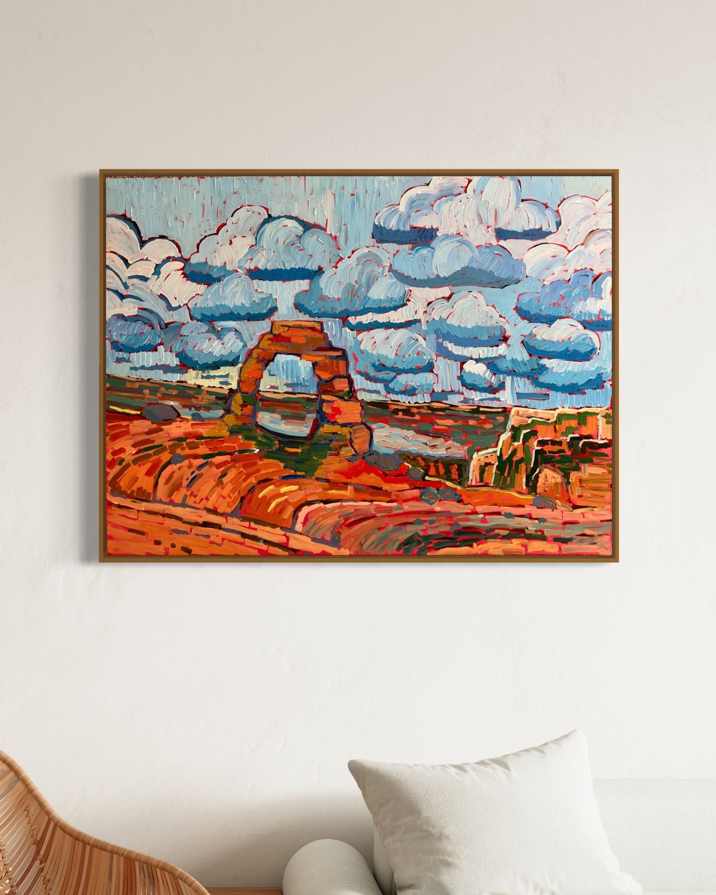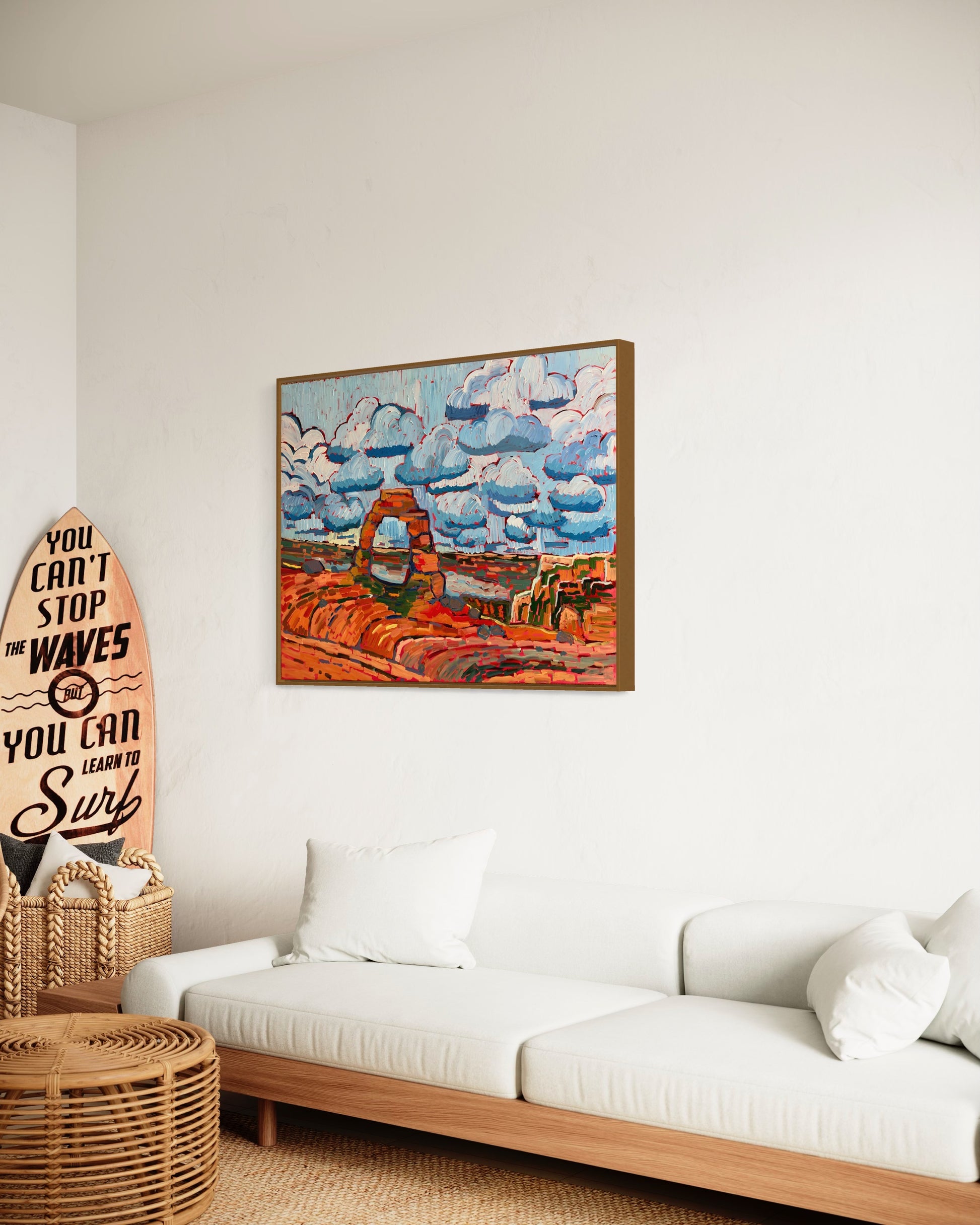 Step into a world of "Arches National Park." Marvel at the delicate balance of nature as towering sandstone arches reach for the sky, sculpted by the winds and sands of time. Immerse yourself in the play of light and shadow, as the desert sun paints a breathtaking canvas across the rugged terrain. Journey through a landscape that feels both otherworldly and undeniably captivating."