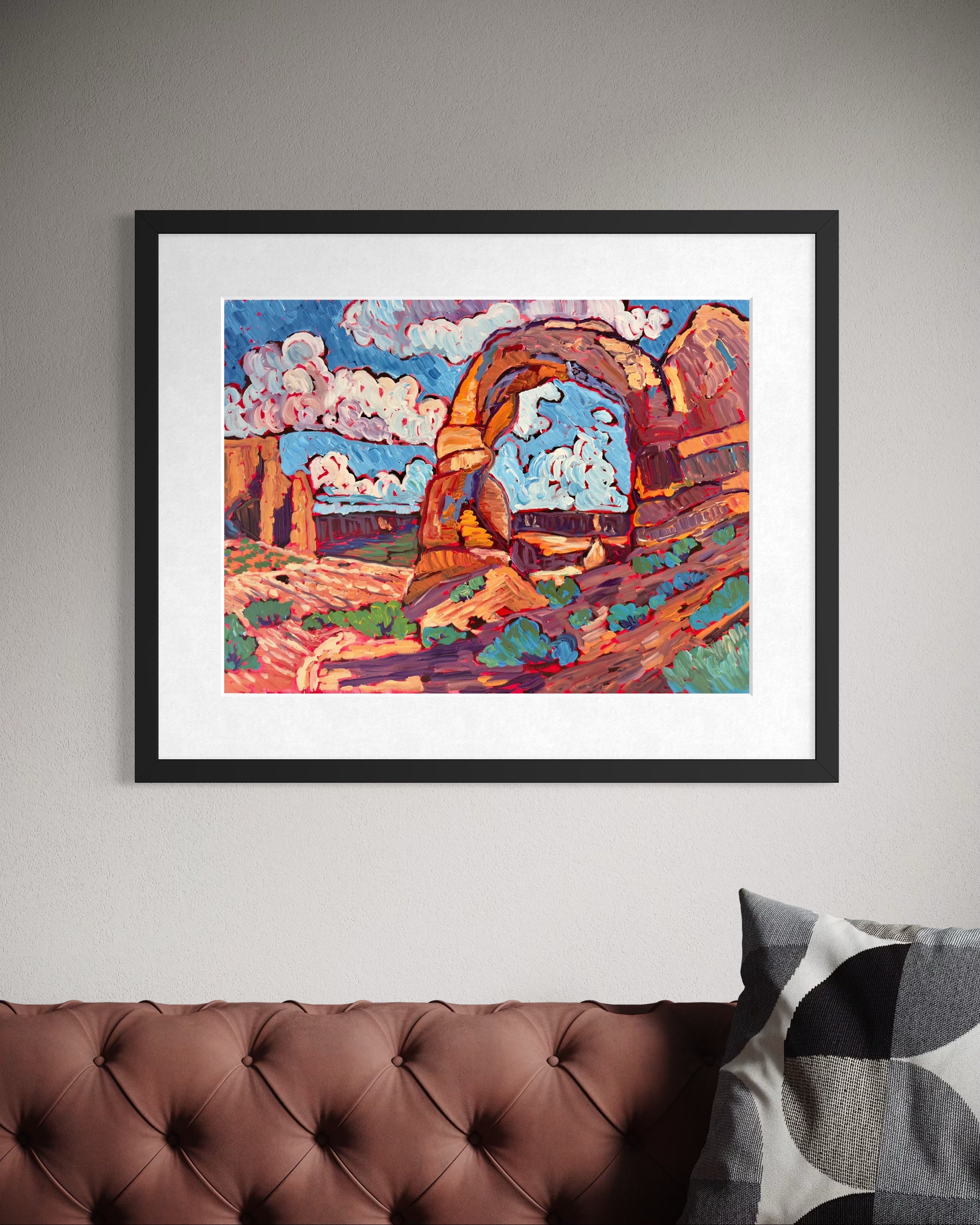 The painting holds a quiet reverence—for balance, for fragility, for the miracle of endurance. It invites the viewer to pause and remember that beauty, like the arches themselves, is born from both presence and erosion, strength and surrender.