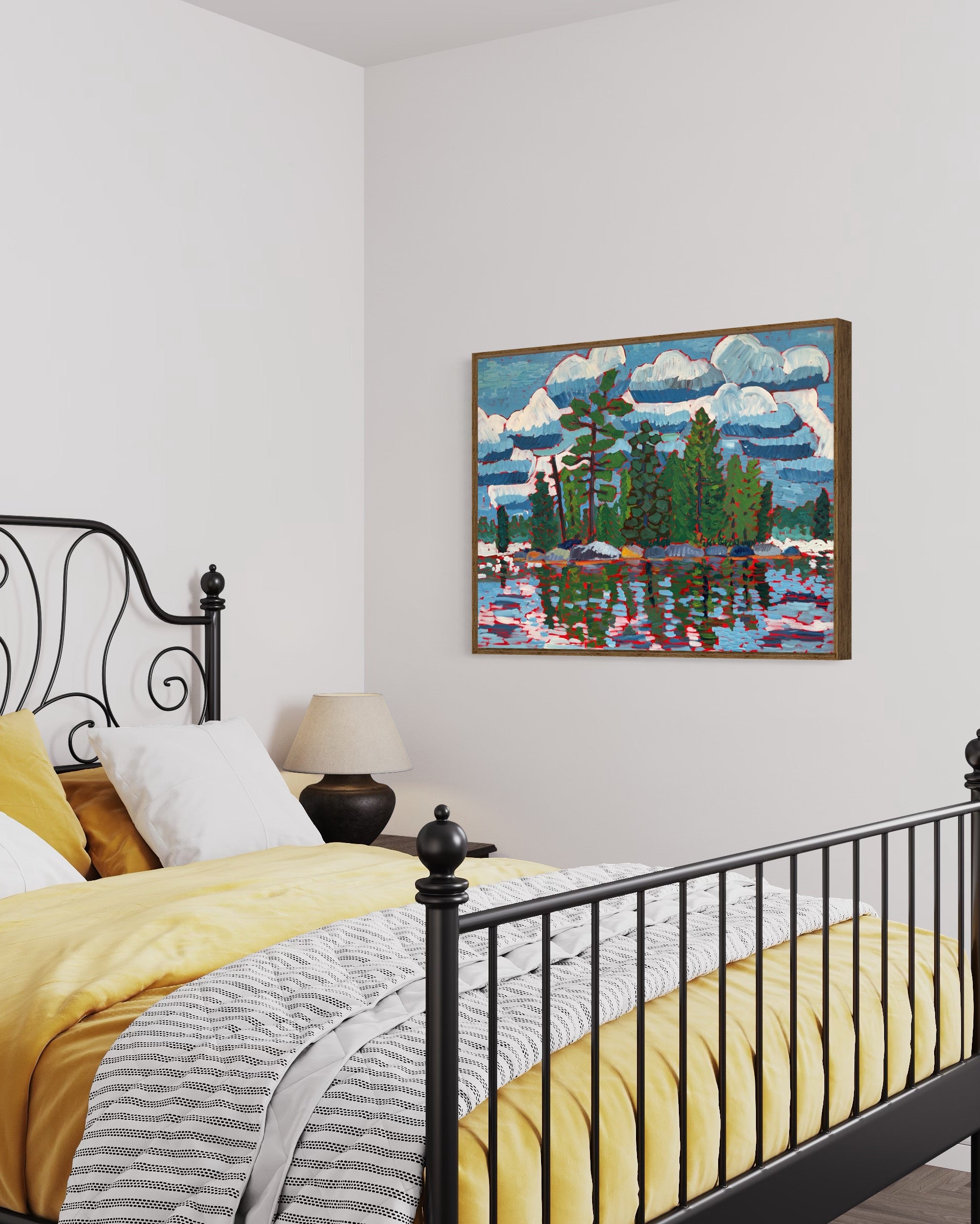 Step into the serene beauty of the 'Boundary Waters'—my latest painting that takes you to a small island in the Boundary Waters of Northern Minnesota. Picture a cozy haven nestled amidst lush greenery and rocky terrain, surrounded by calm waters perfect for tranquil escapes. With textured brushstrokes, I've brought this peaceful oasis to life, capturing the essence of nature's reflection and the soothing harmony of the landscape. It's an invitation to unwind and embrace the sweet escape of 'Island Solitude,' where you can lose yourself in the serenity of this secluded hideaway.