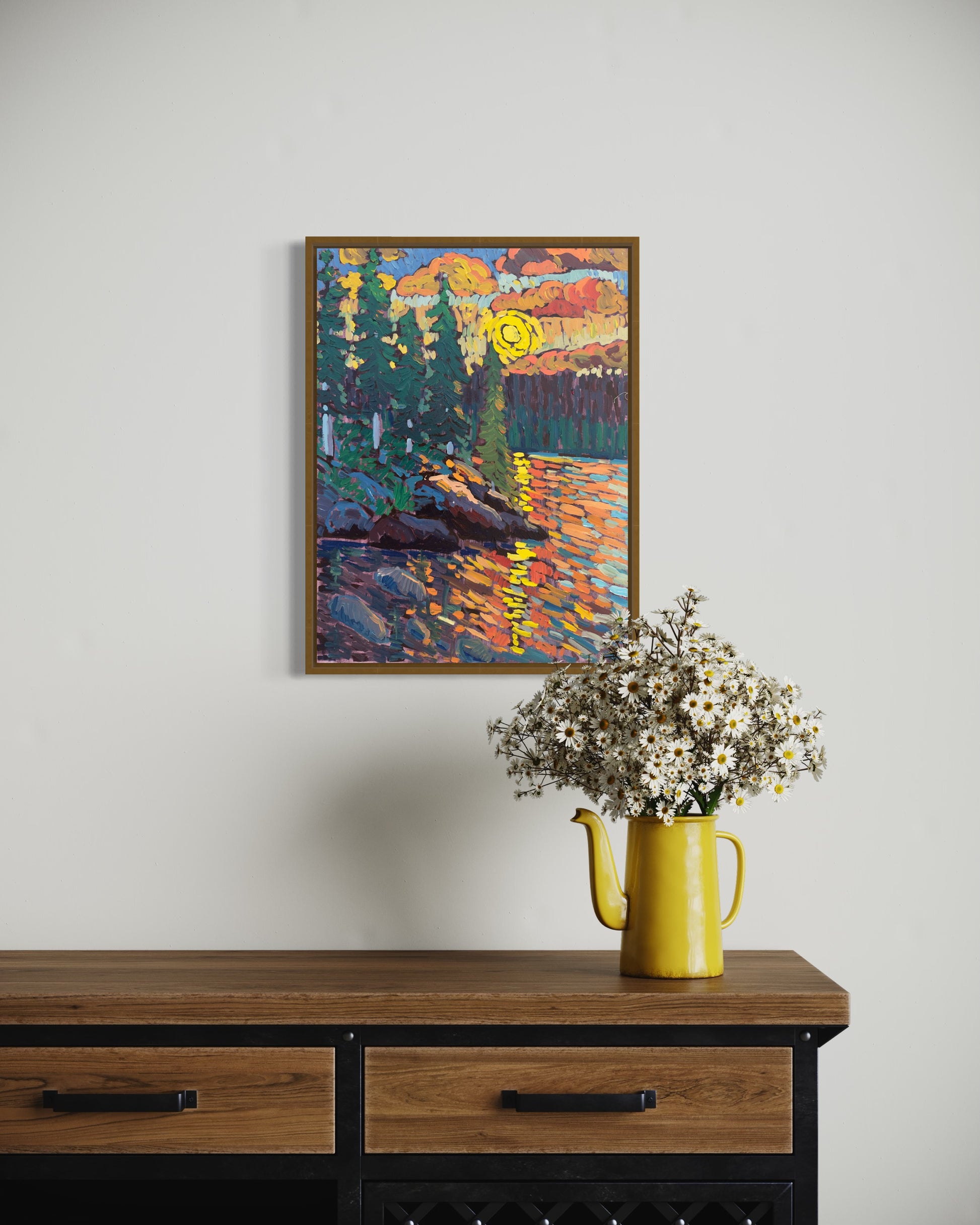 Step into the serene beauty of the 'Boundary Waters'—my latest painting that takes you to a small island in the Boundary Waters of Northern Minnesota. Picture a cozy haven nestled amidst lush greenery and rocky terrain, surrounded by calm waters perfect for tranquil escapes. With textured brushstrokes, I've brought this peaceful oasis to life, capturing the essence of nature's reflection and the soothing harmony of the landscape. It's an invitation to unwind and embrace the sweet escape of 'Island Solitude,' where you can lose yourself in the serenity of this secluded hideaway.