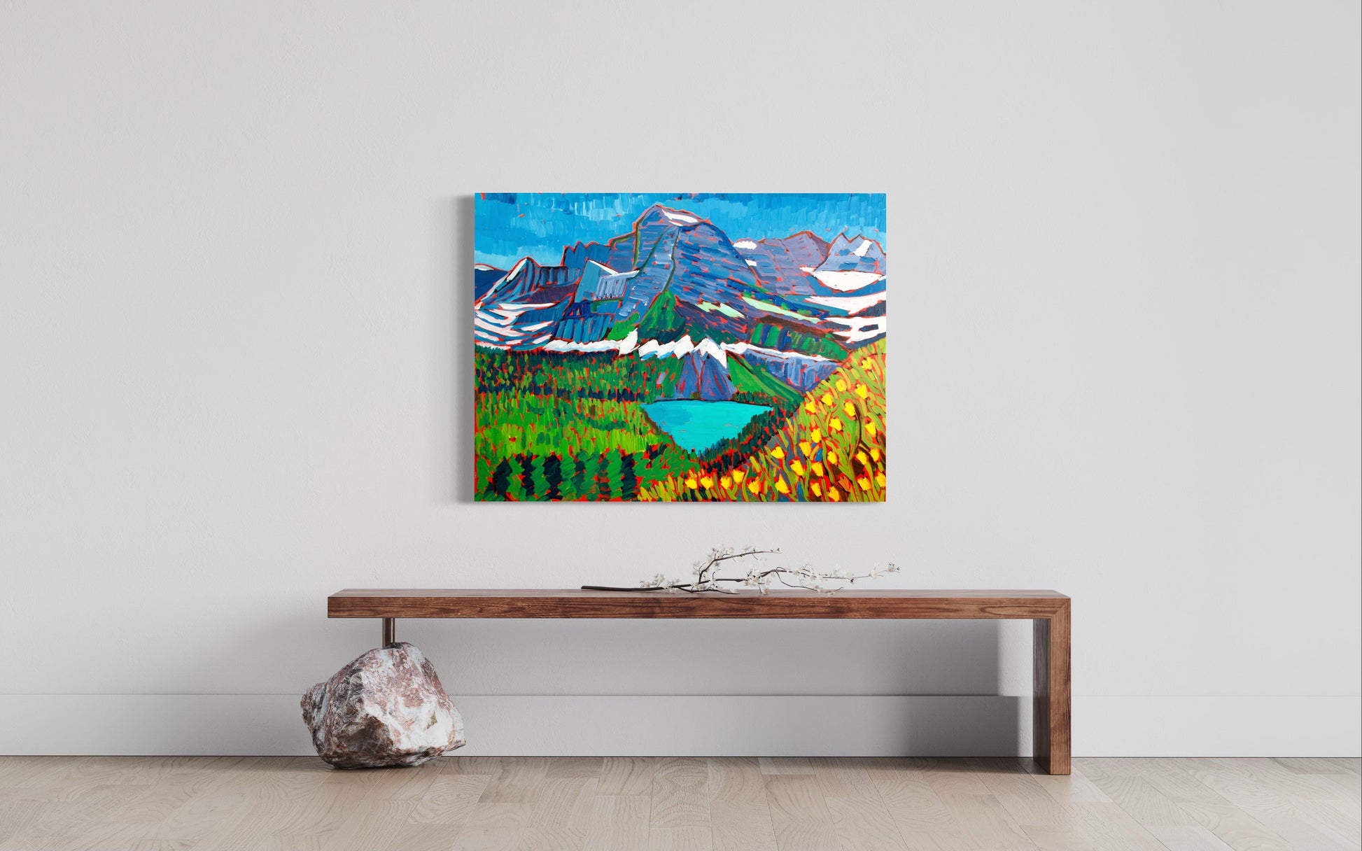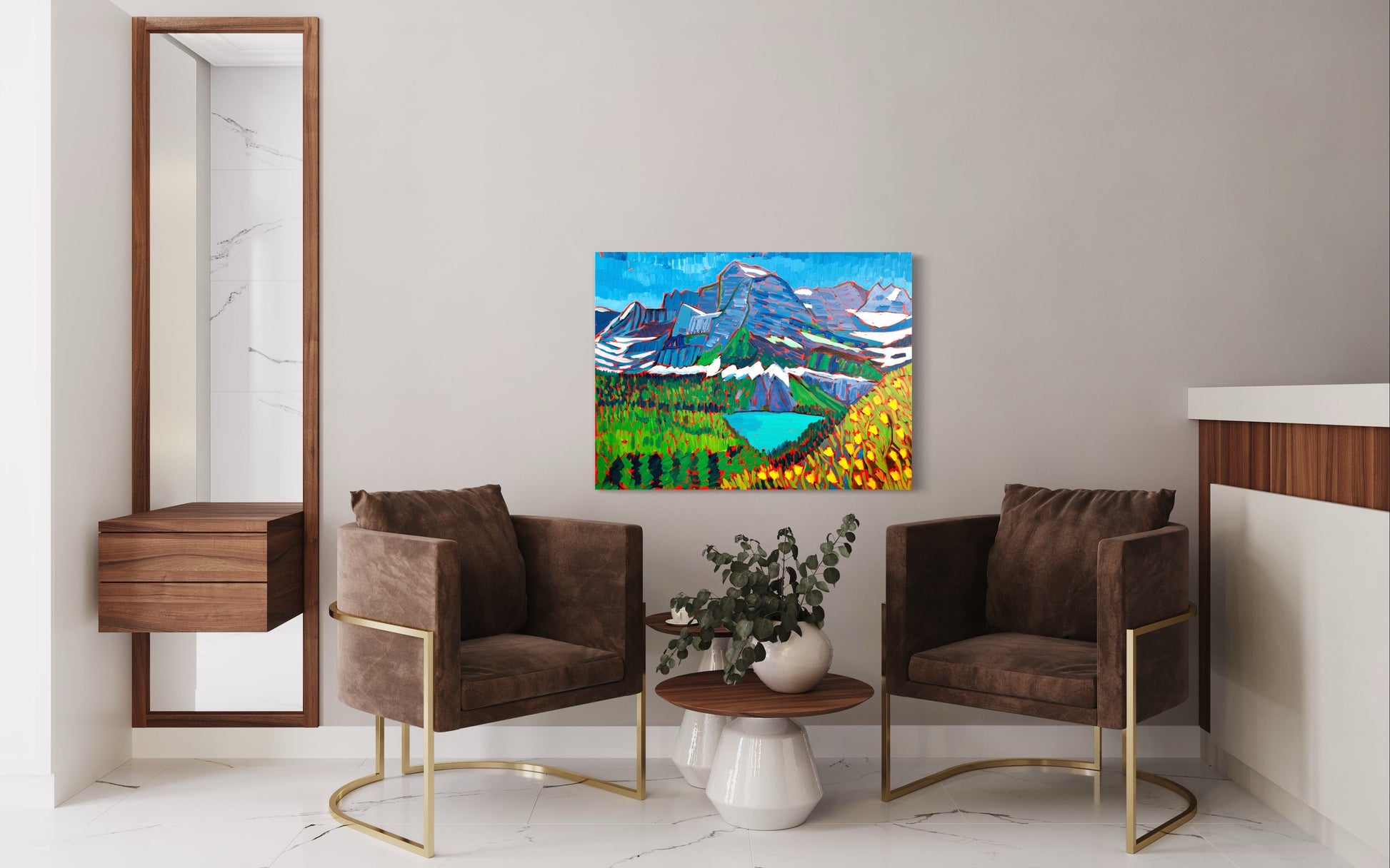 30"x40" Heavy Body Acrylic Paintings on Canvas, the National Parks collection offers a unique way to display the beauty of America's wilderness and evoke the sensation of exploration and discovery. A thoughtful homage to unforgettable moments in nature, this limited palette artwork is brought to life with vivid colors and expressive brush strokes. As Franklin D. Roosevelt proclaimed, "There is nothing so American as our national parks...the country belongs to the people."