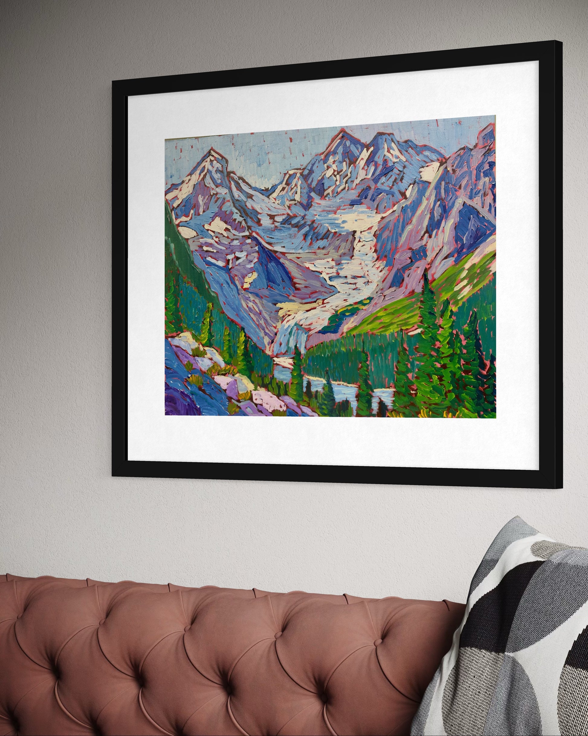 The painting reflects Glacier’s fierce elegance—majestic yet vulnerable, powerful yet fleeting, shaped by ice, time, and wonder. It invites the viewer to step into a landscape where the air is sharp, the silence runs deep, and the grandeur of the world feels both humbling and holy.