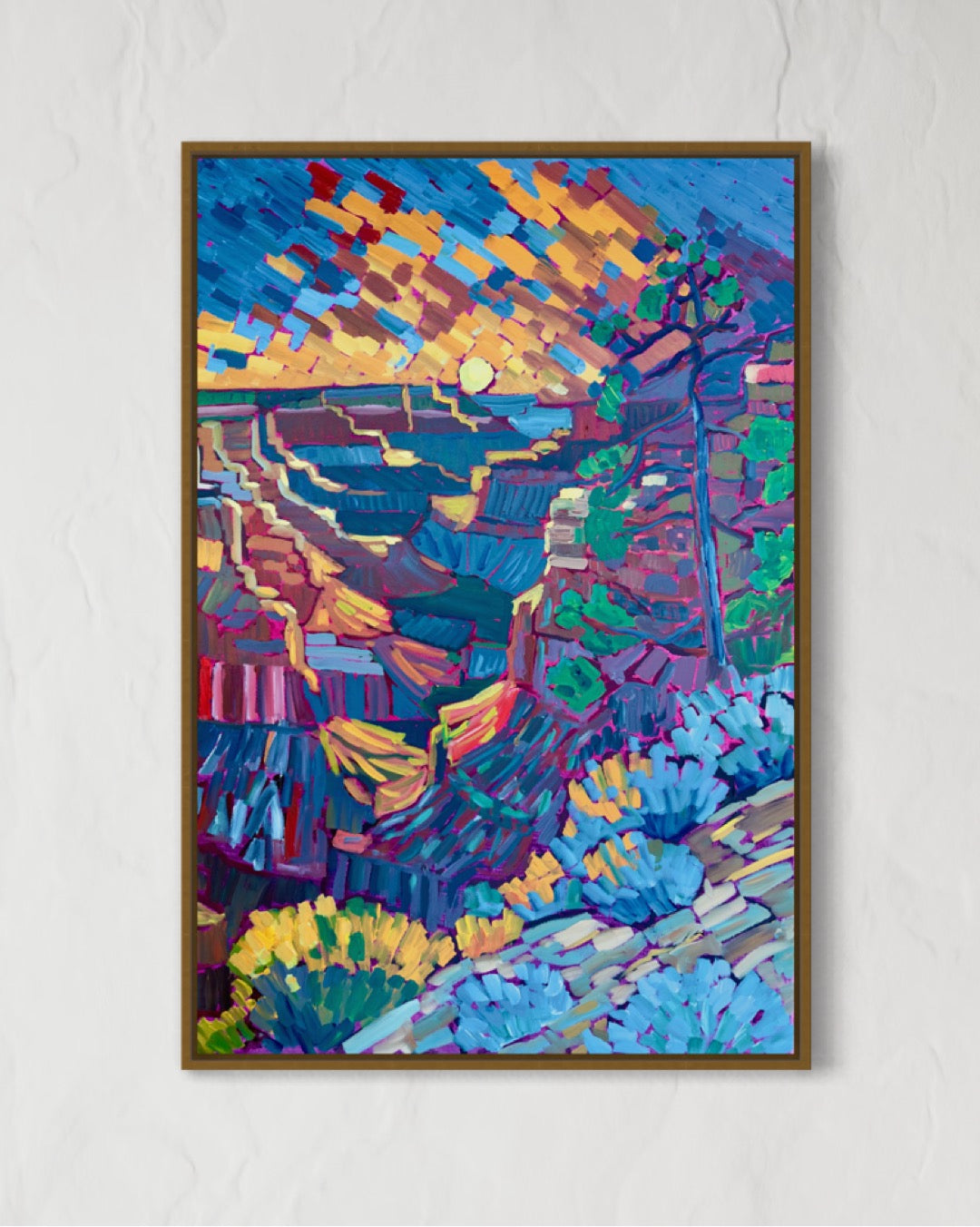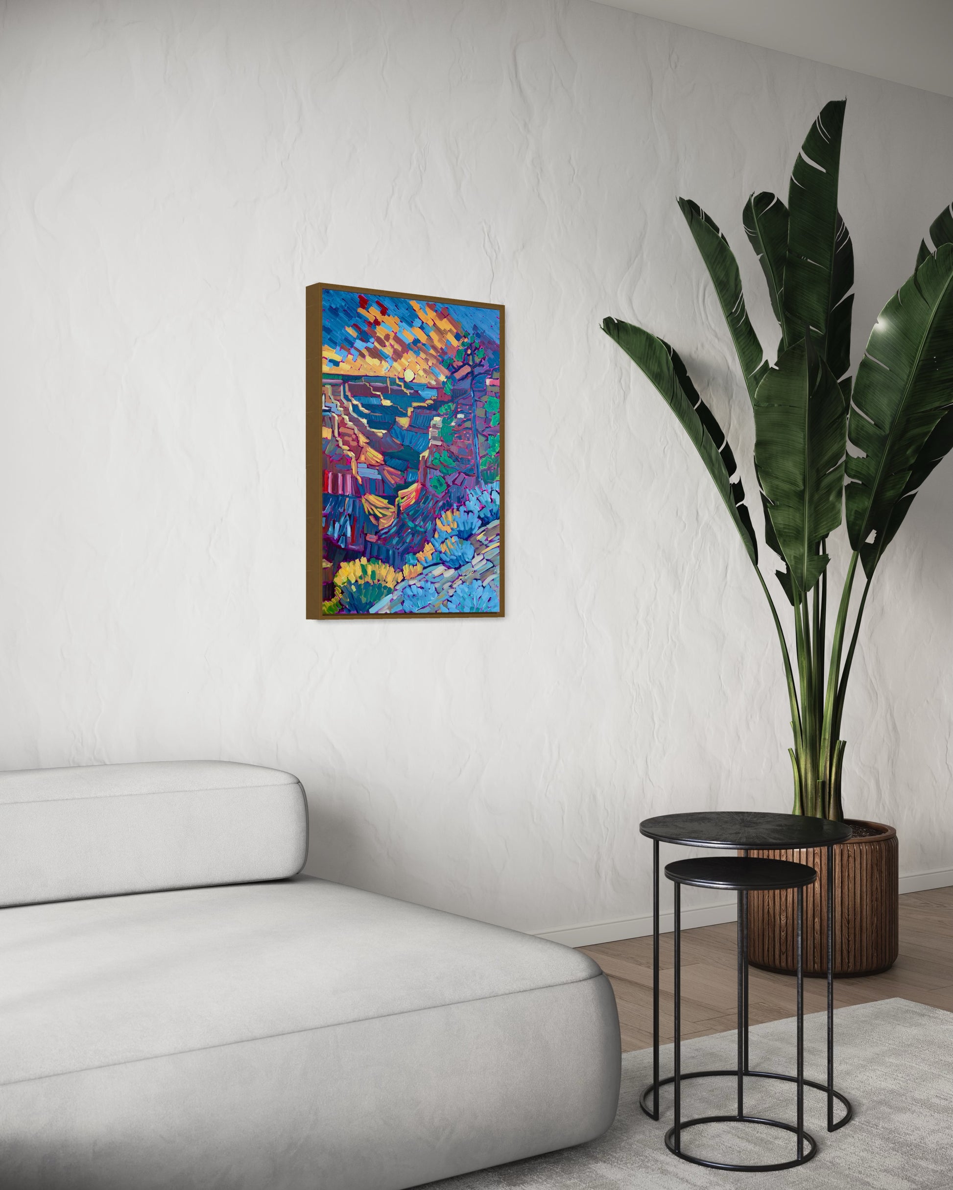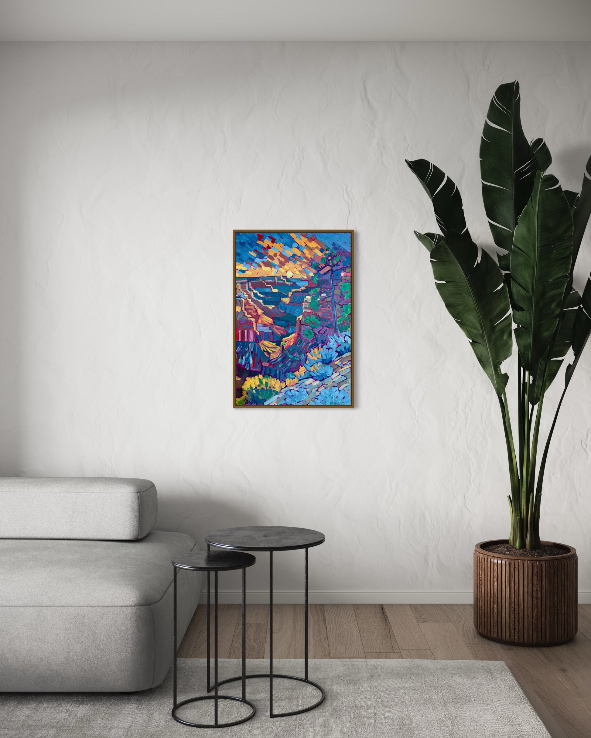 Step into the awe-inspiring world of 'Grand Canyon National Park,' a painting that invites you to experience the unparalleled grandeur. In this artwork, the vast chasm, painted in layers of rich earth tones, stretches beyond the horizon, a testament to the forces of time and nature. With textured brushstrokes, I've captured the intricate details of the canyon's walls, revealing the stories etched in every layer of rock. As you gaze upon the Grand Canyon, you'll feel the overwhelming awe of this landscape's majestic expanse, where the sheer magnitude and timeless beauty of this natural wonder come to life in a vivid masterpiece that pays homage to the Earth's ancient history.