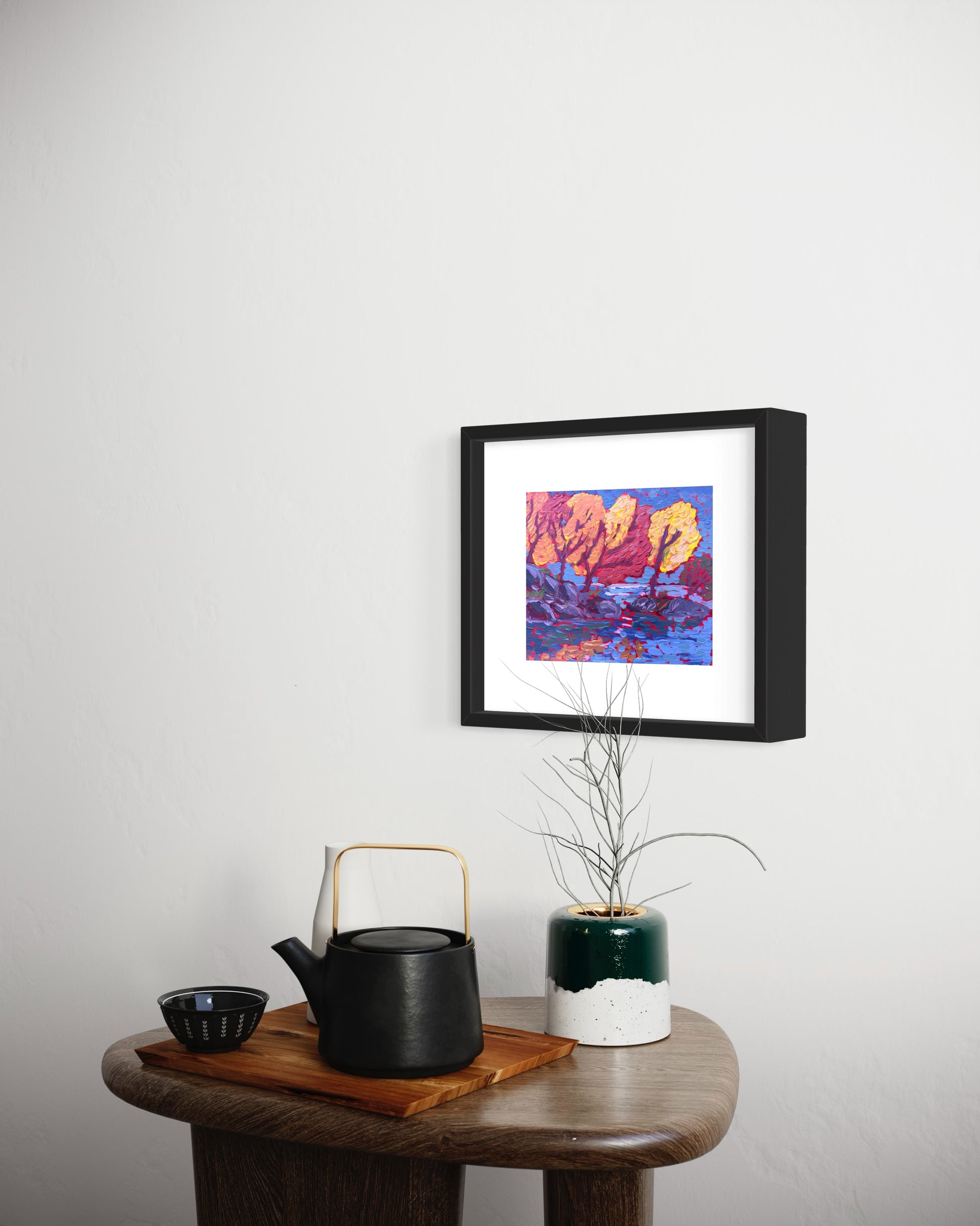 The thick, textured strokes make the scene come alive, almost inviting you to step into the peaceful morning. It's a burst of nature's beauty frozen on canvas, perfect for adding a touch of serene vibrance to any space.