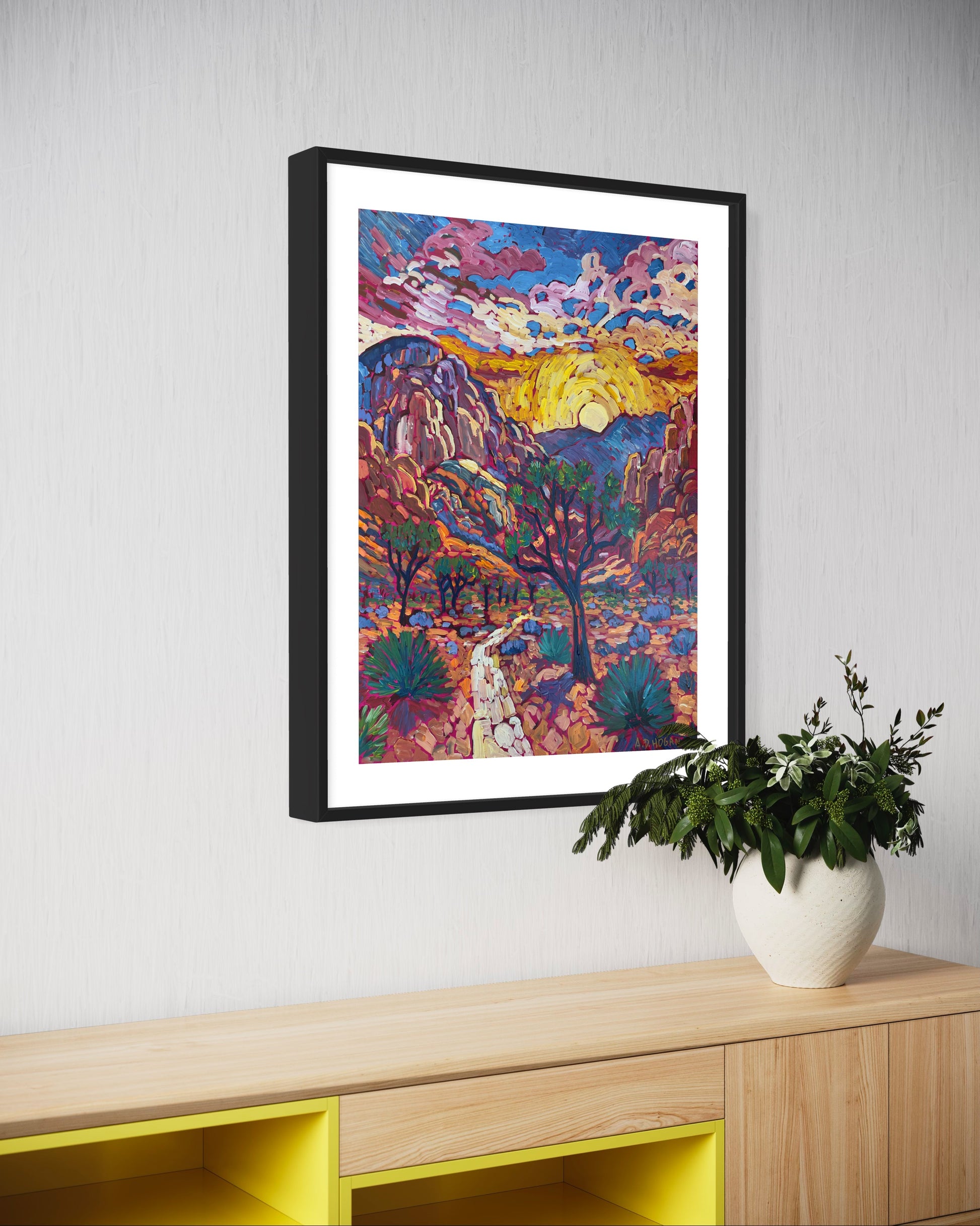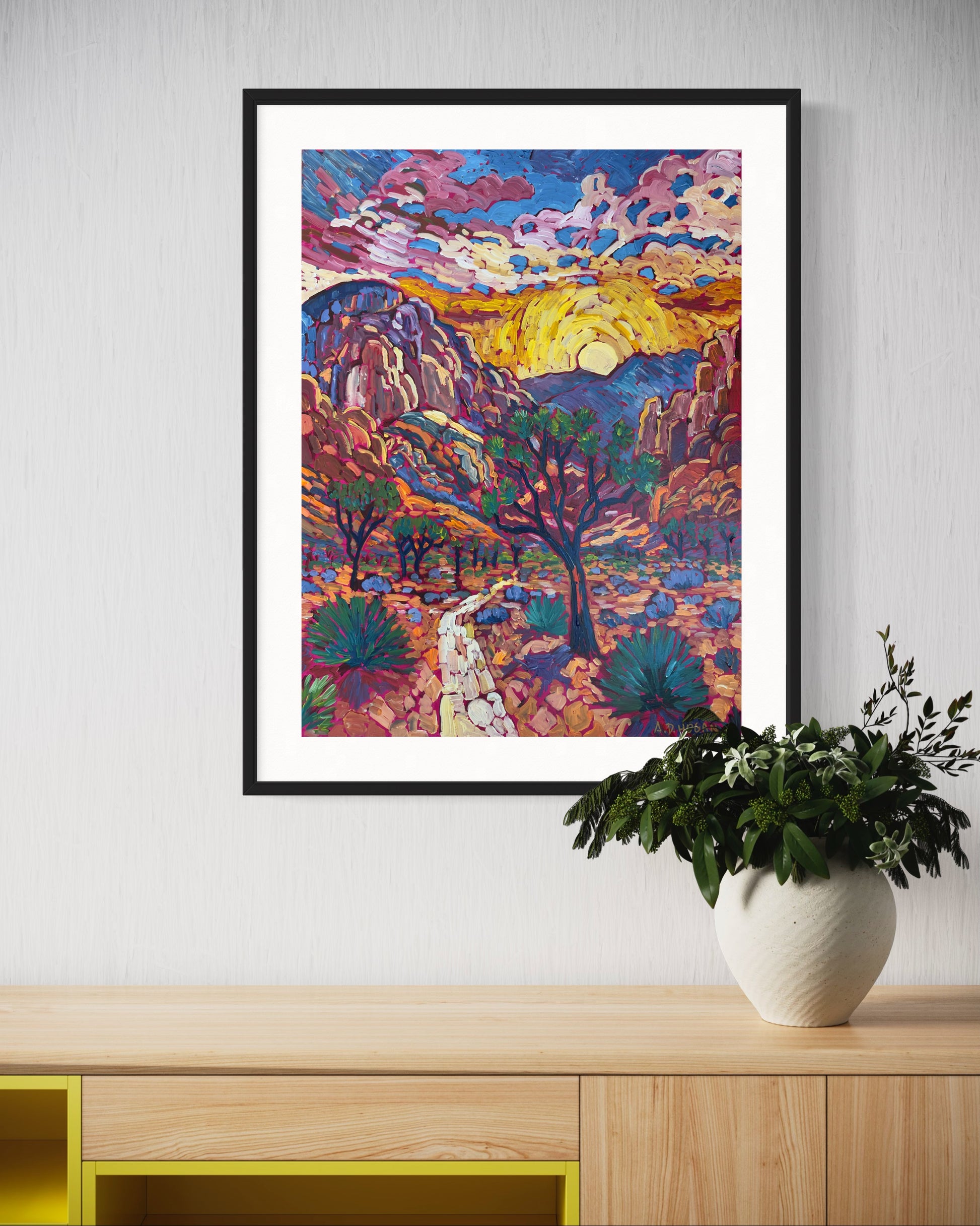 The 18"x24" fine art paper print captures every detail in a stunning size that brings the artwork's depth and richness to life. Perfect for framing and enhancing your space. -