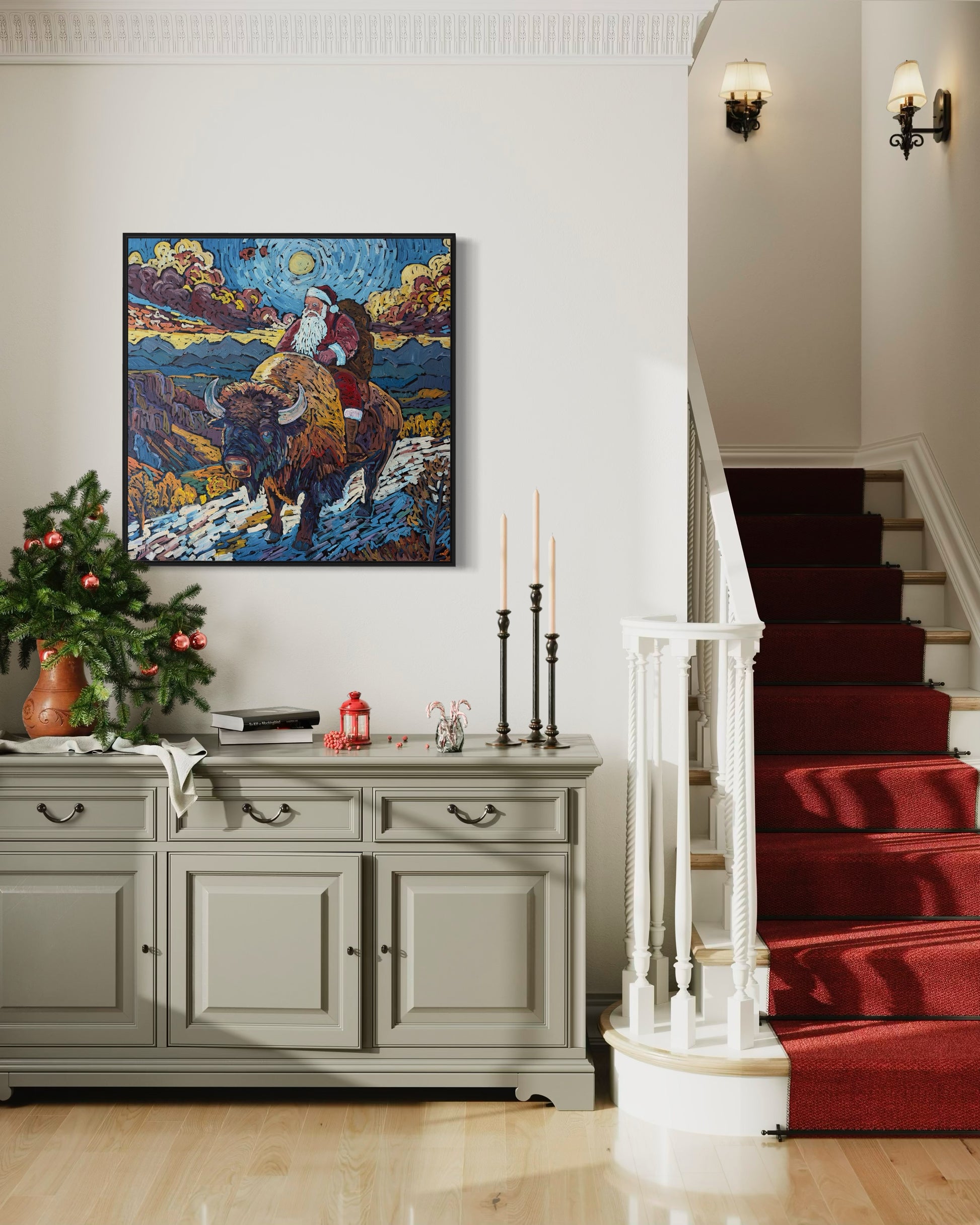 The 36"x36" canvas print is ideal for those seeking a bold, gallery-ready piece. This large format maximizes the impact of the artwork, showcasing the intricacies of each brushstroke in stunning detail.