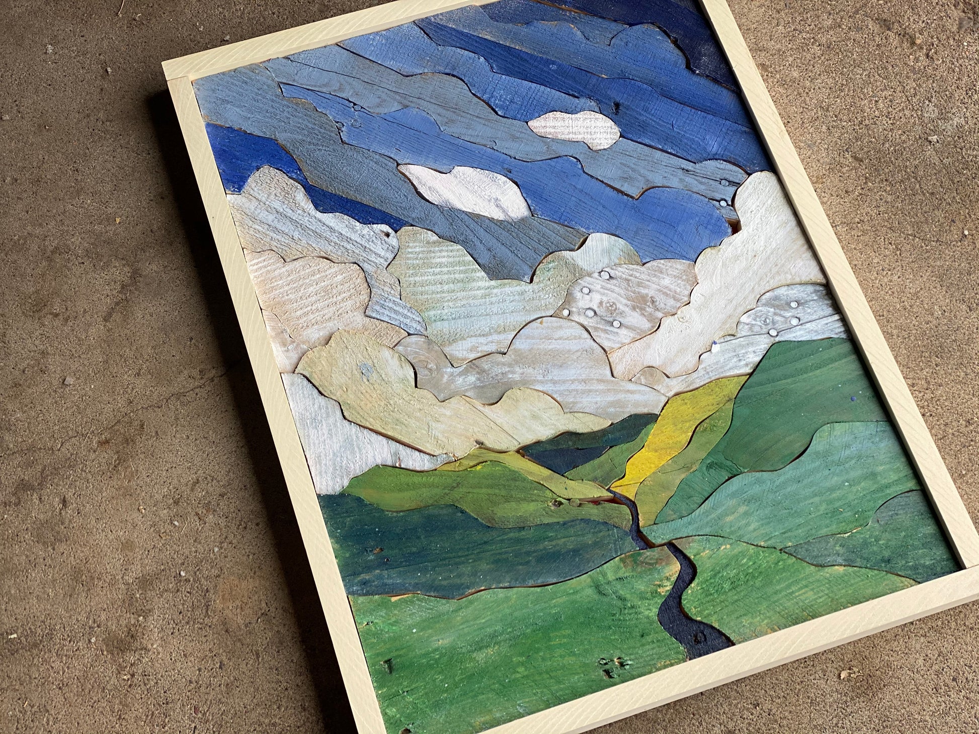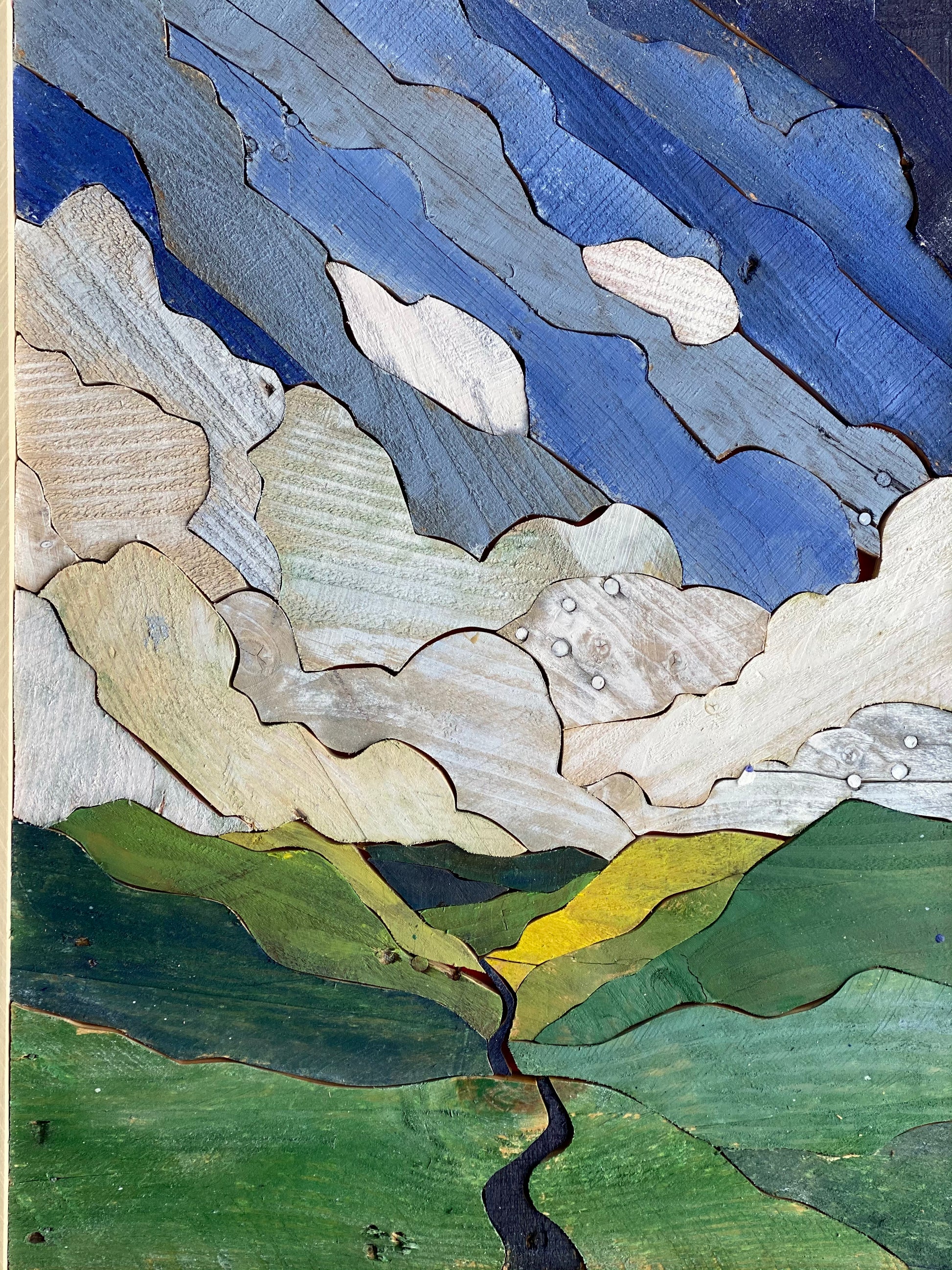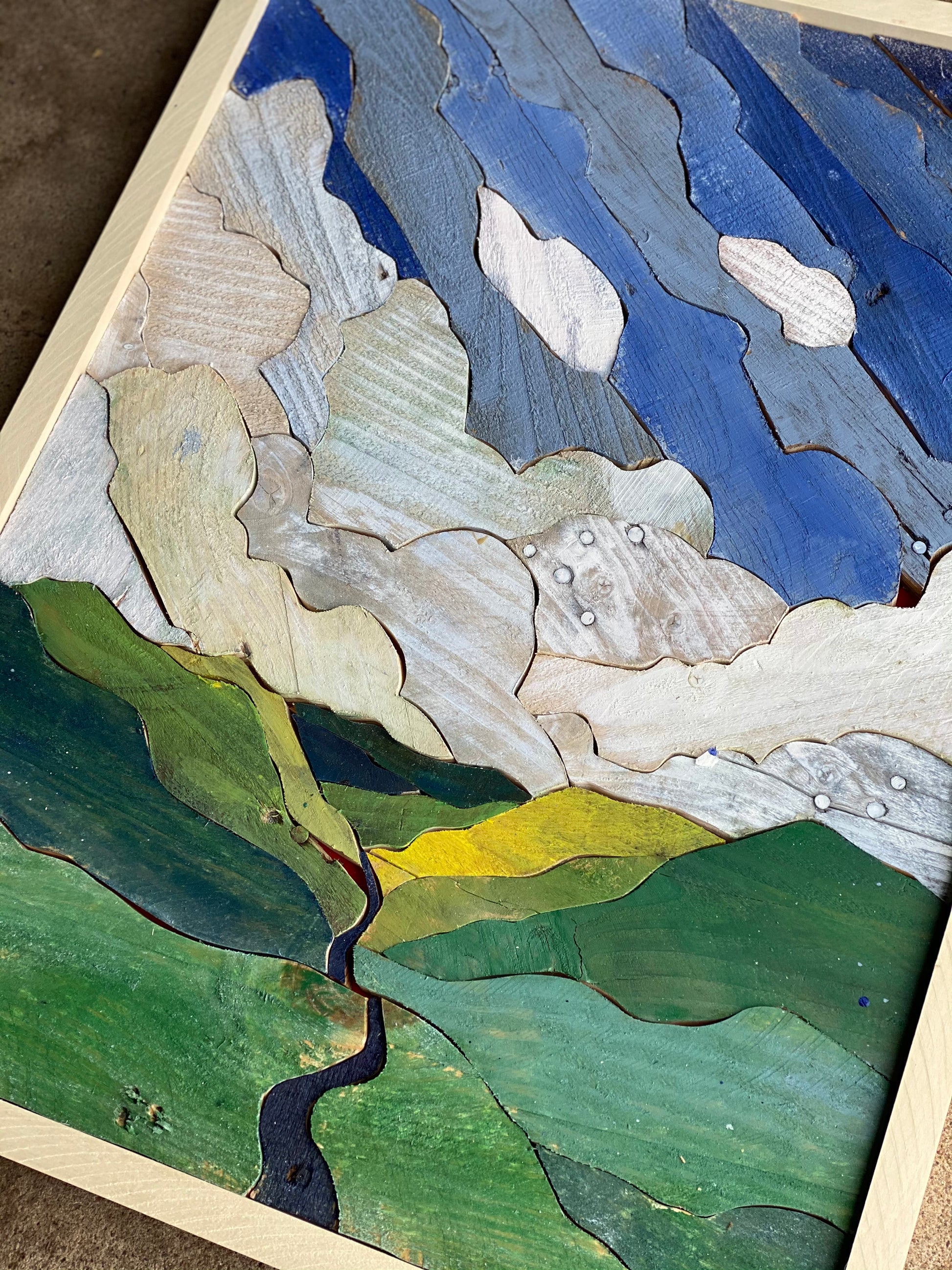 Each statement piece is an original. There are no shortcuts in the process. Each work is created with dozens to hundreds of handcrafted pieces of reclaimed lumber.