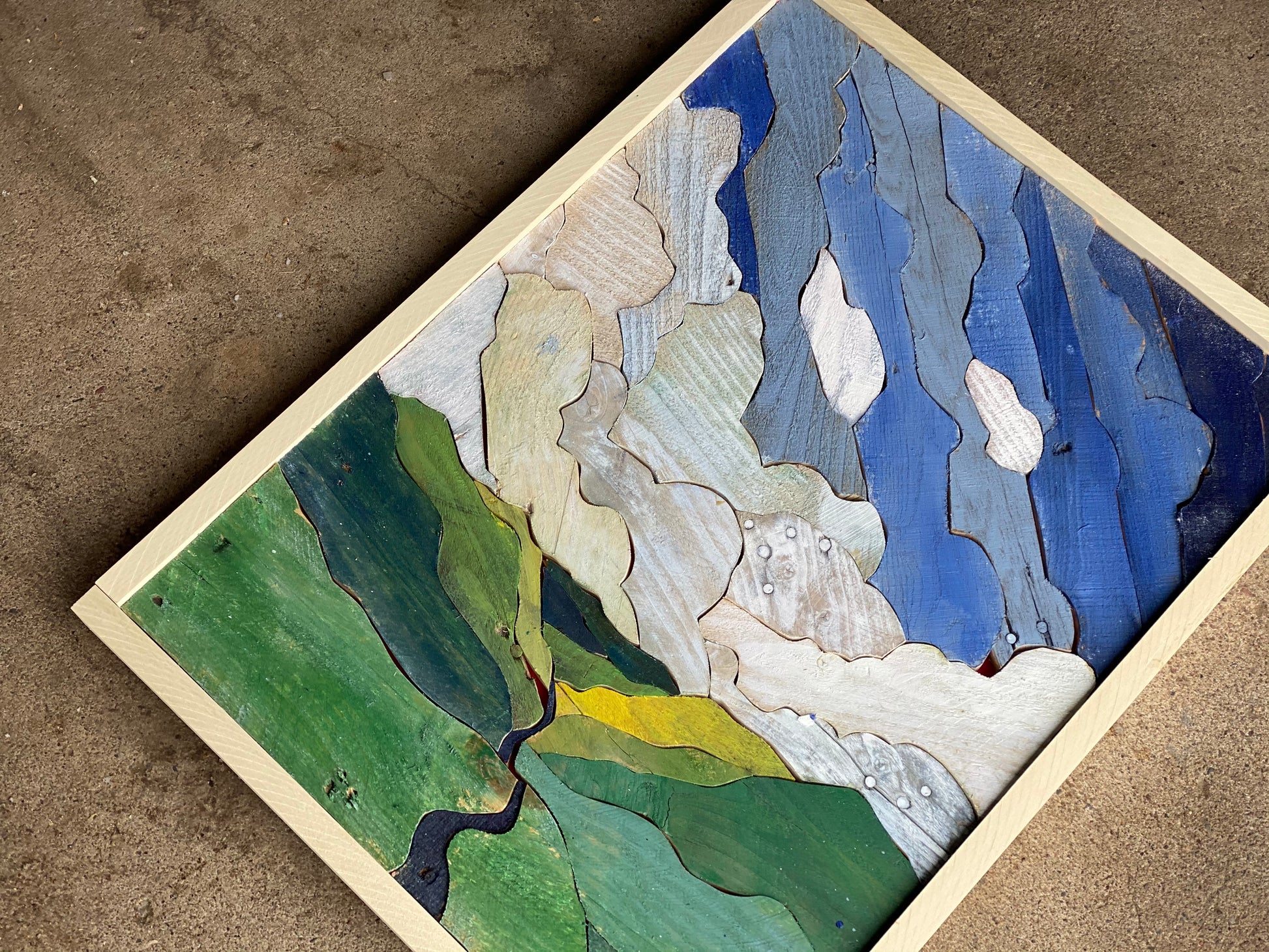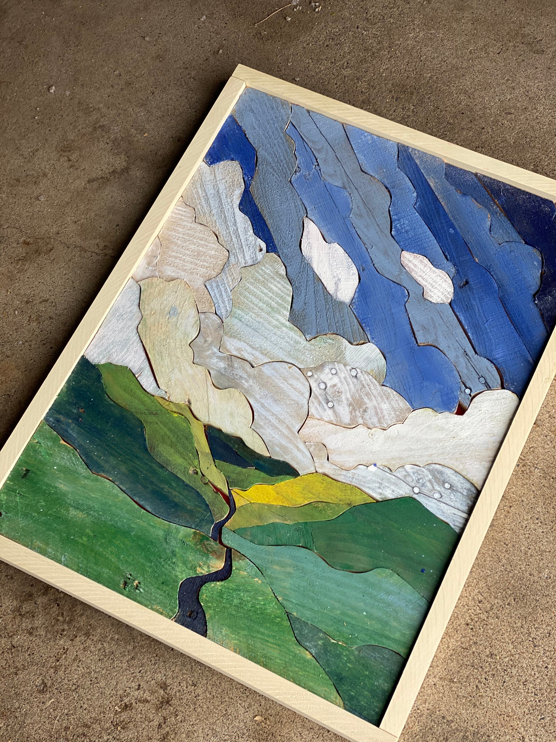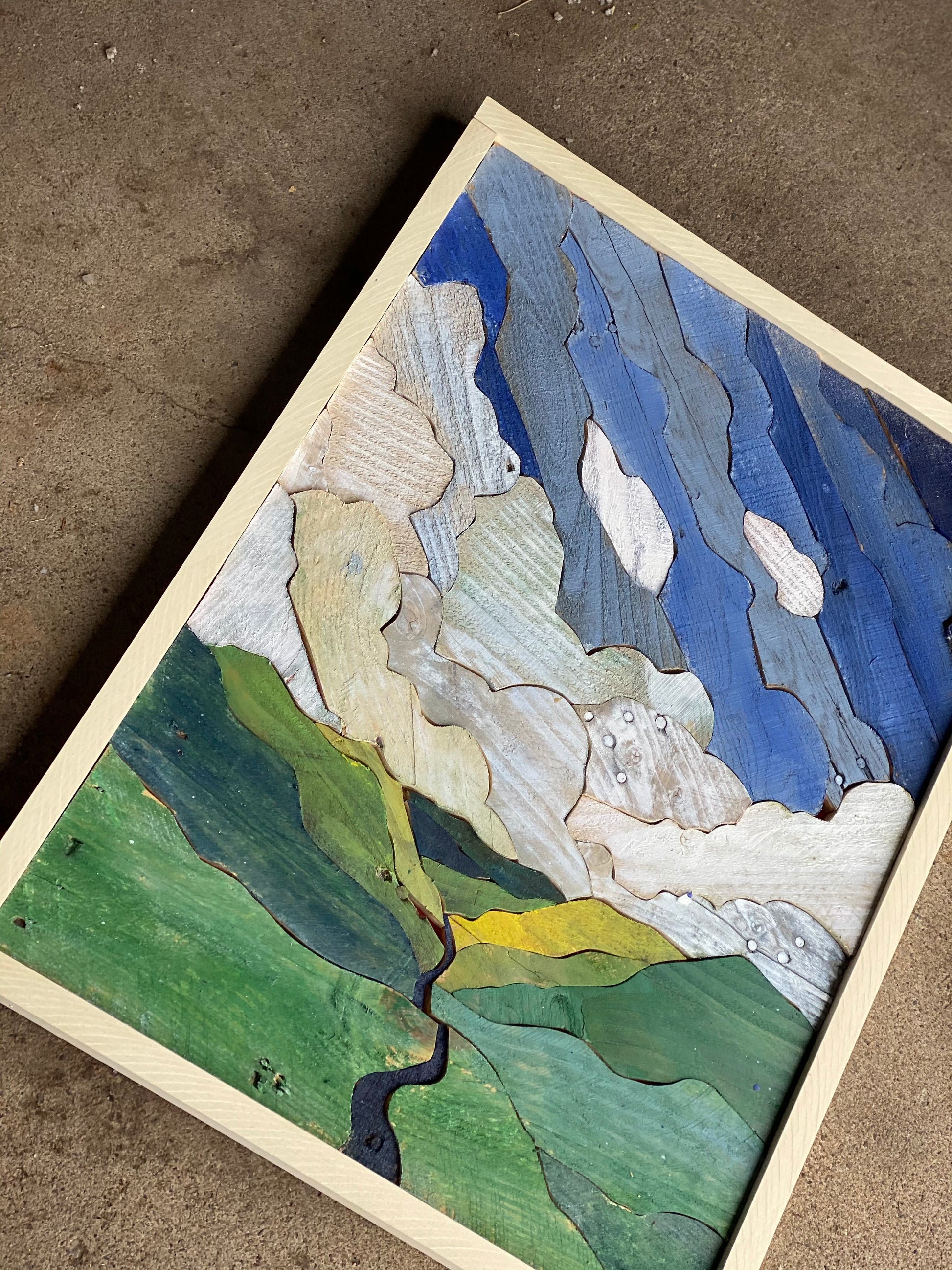 Each statement piece is an original. There are no shortcuts in the process. Each work is created with dozens to hundreds of handcrafted pieces of reclaimed lumber.