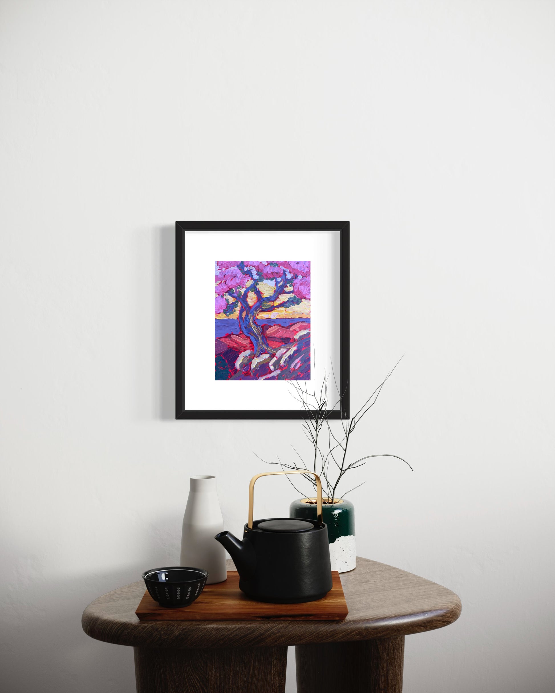 Step into the vibrant hues of nature with this exquisite 8x10" canvas board painting! Crafted using heavy body acrylics in an impasto style, it showcases a blooming rhododendron tree in all its radiant glory, set against a serene backdrop.