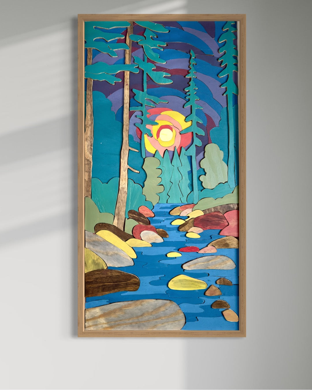 A.D. Hogan's artworks are crafted with dozens to hundreds of handcrafted pieces of reclaimed lumber, providing a unique, one-of-a-kind look. This artwork serves to repurpose our waste, reconnect us to the wild, and call us to slow down, anchoring us to the goodness, beauty, and truth right here on earth. Every piece of art tells a story of transformation, reuse, and restoration.