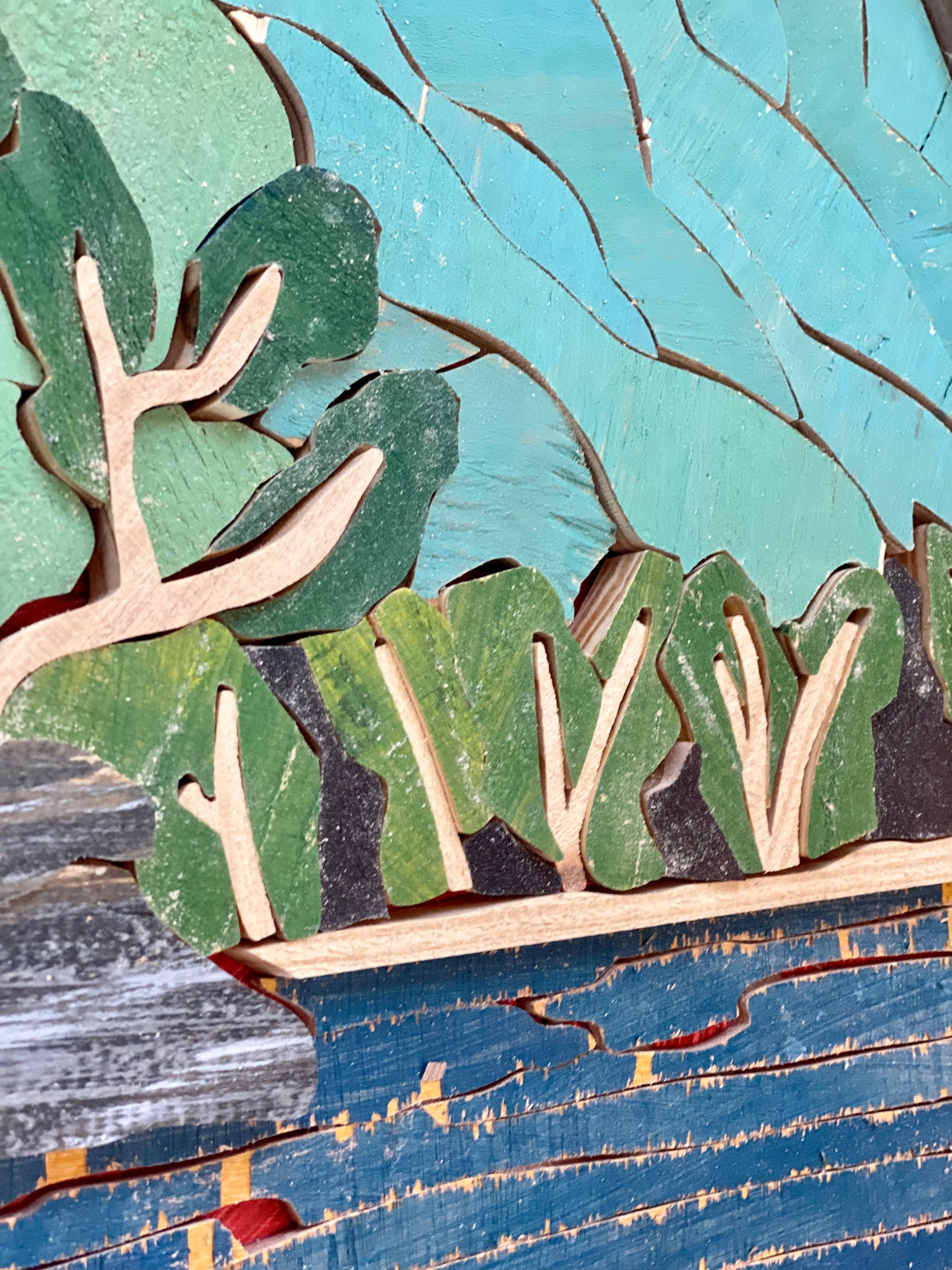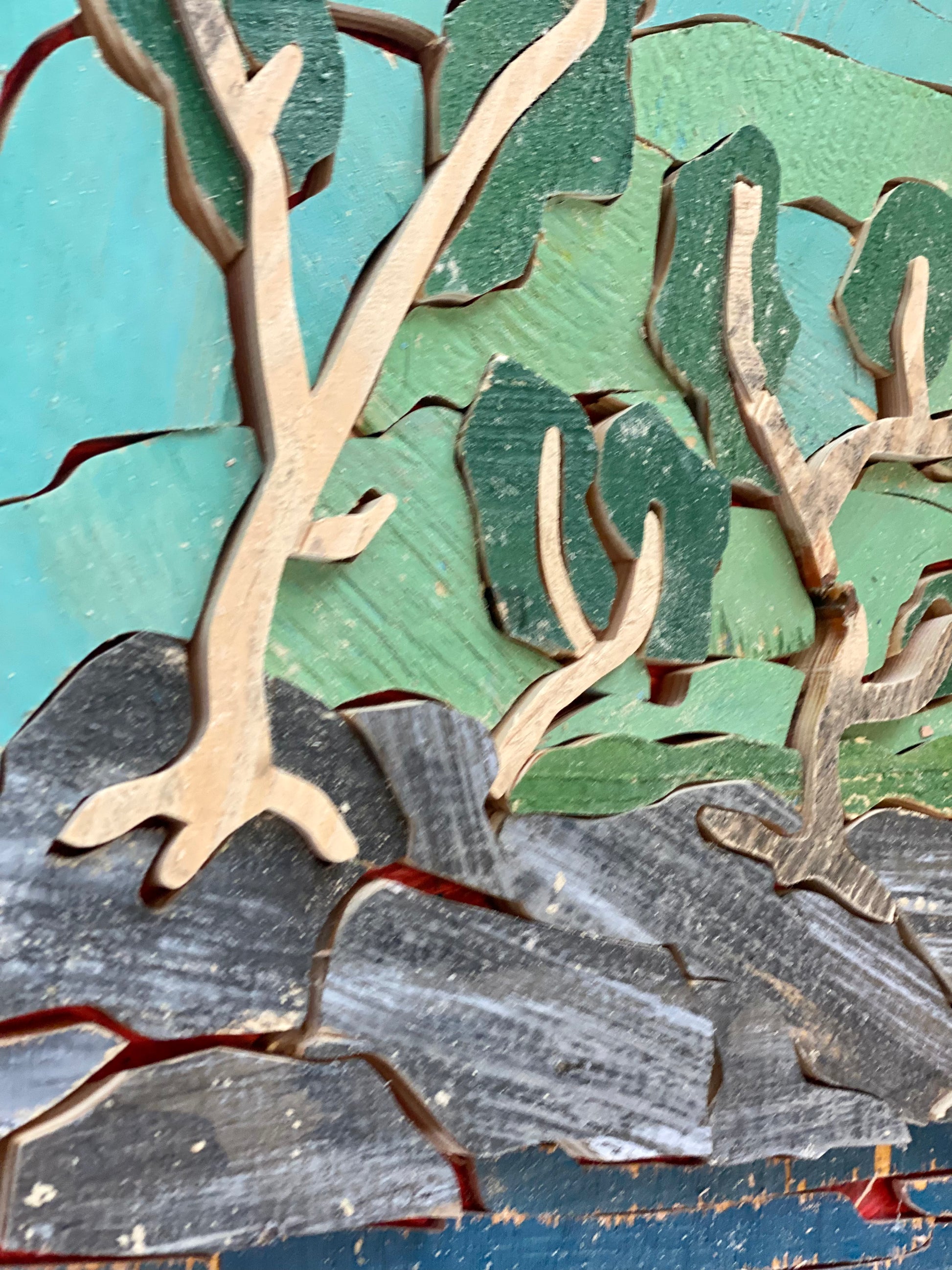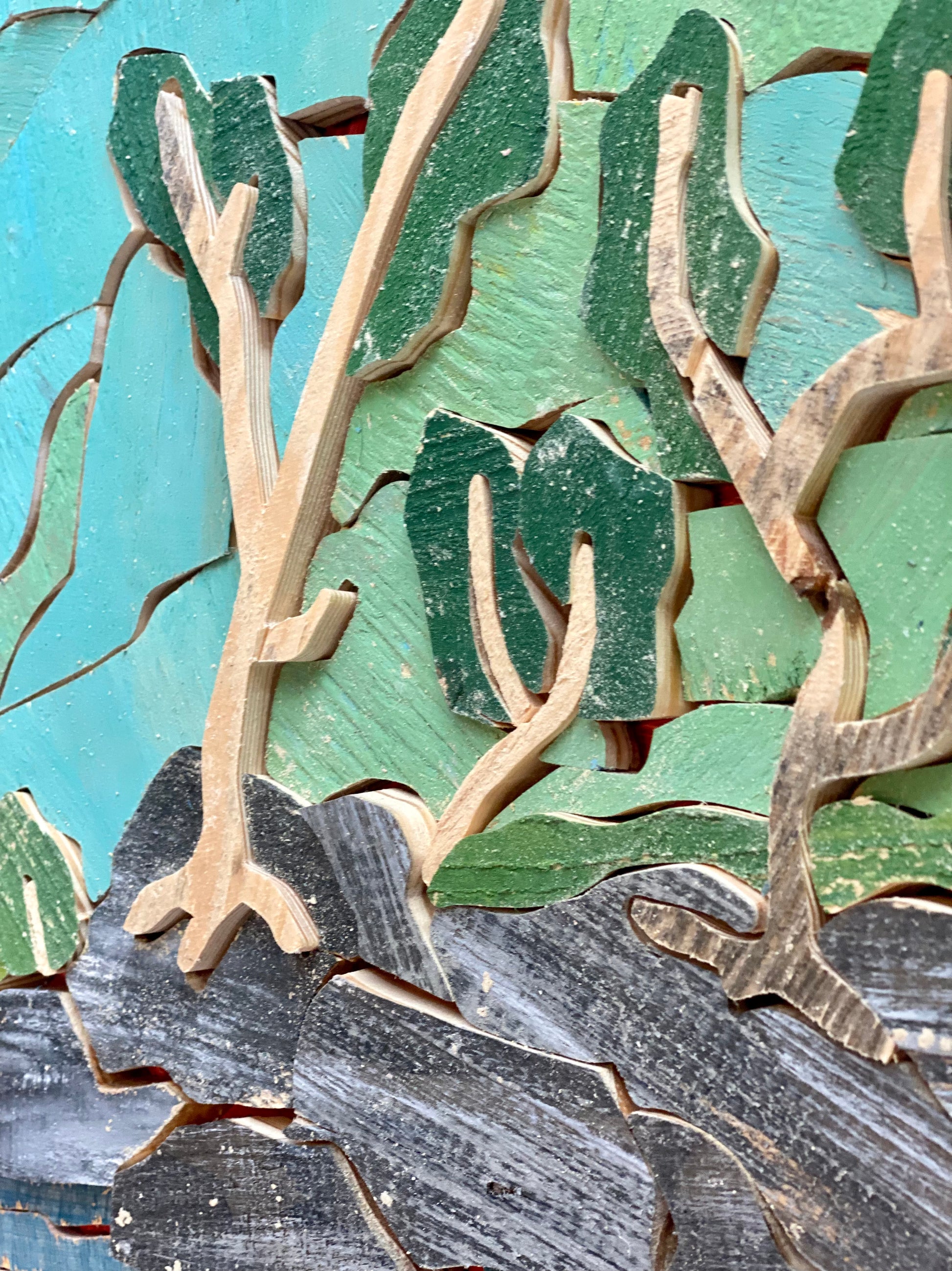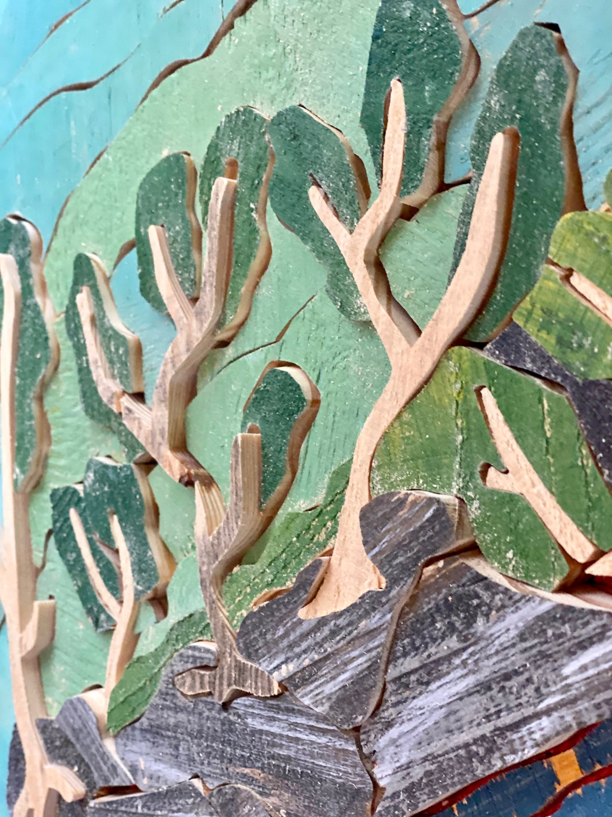 A.D. Hogan is artwork to repurpose our waste and reconnect us to the wild. Each statement piece is an original. There are no shortcuts in the process. Each work is created with dozens to hundreds of handcrafted pieces of reclaimed lumber. Art calls us to slow down and anchor us to those transcendental values of goodness, beauty, and truth found right here on the earth around us.
