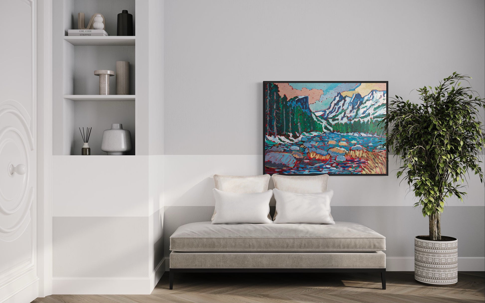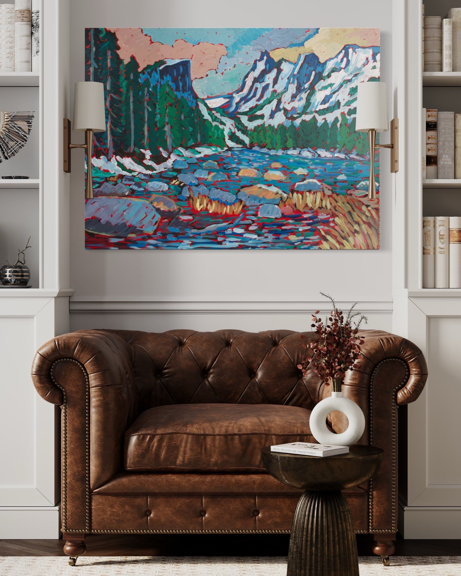 36"x48" Heavy Body Acrylic Paintings on Canvas, the National Parks collection offers a unique way to display the beauty of America's wilderness and evoke the sensation of exploration and discovery. A thoughtful homage to unforgettable moments in nature, this limited palette artwork is brought to life with vivid colors and expressive brush strokes. As Franklin D. Roosevelt proclaimed, "There is nothing so American as our national parks...the country belongs to the people."