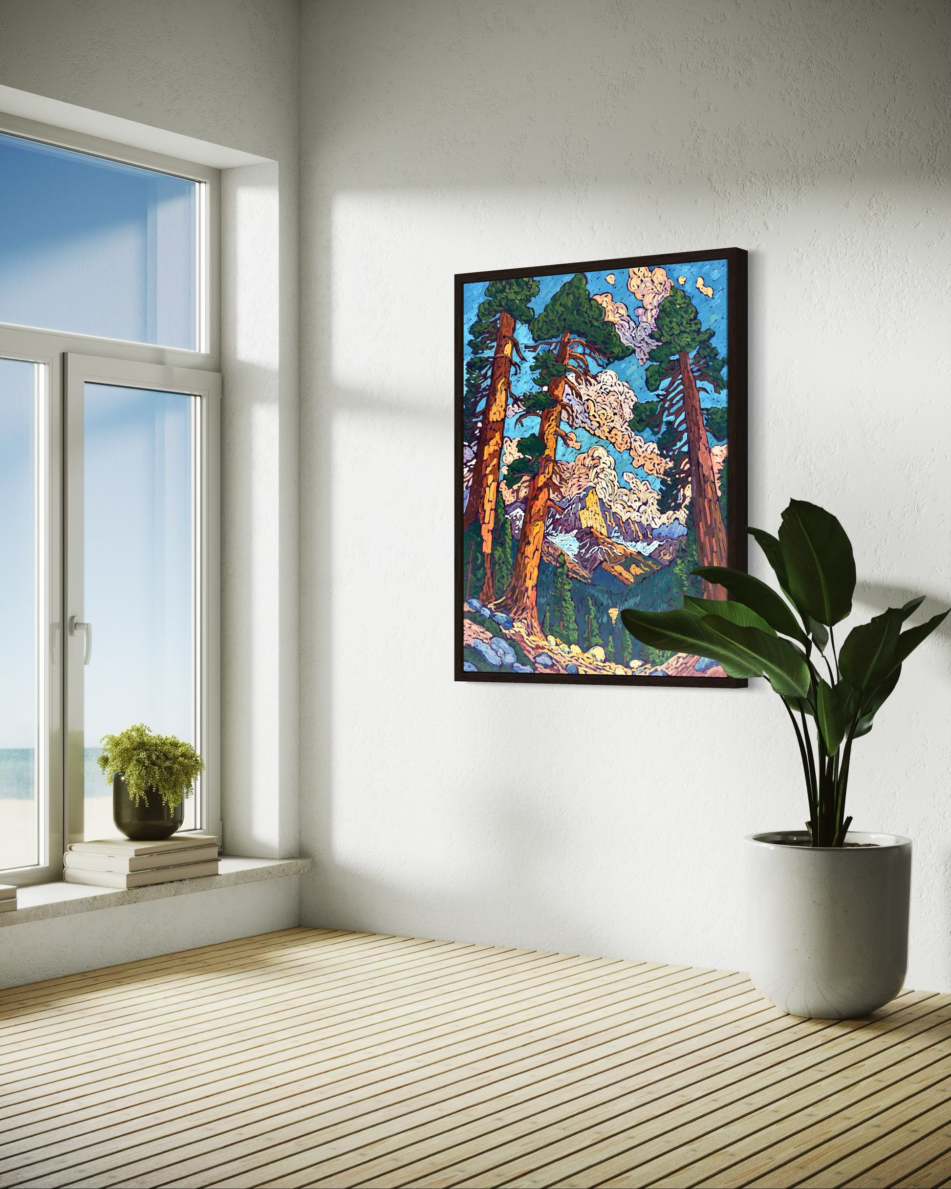 Experience the timeless grandeur of Sequoia National Park through this 30" x 40" original impasto painting on premium gallery-wrapped canvas. Thick, textured brushstrokes bring dimension to towering red-barked giants, as sunlight filters softly through their lofty canopies onto a forest floor carpeted in lush greens. With each layer of paint, the artist captures the quiet reverence of ancient groves, inviting you into a world both serene and majestic.