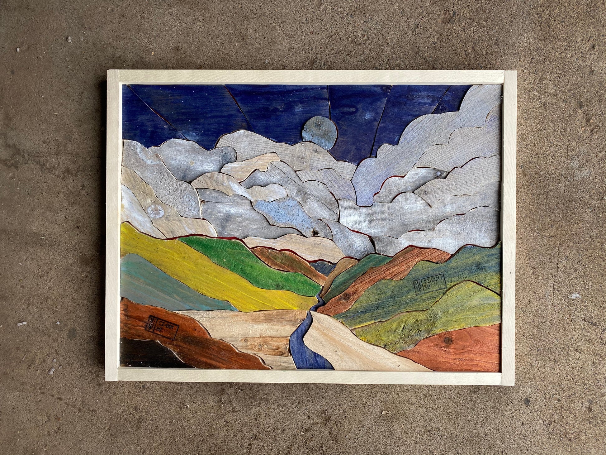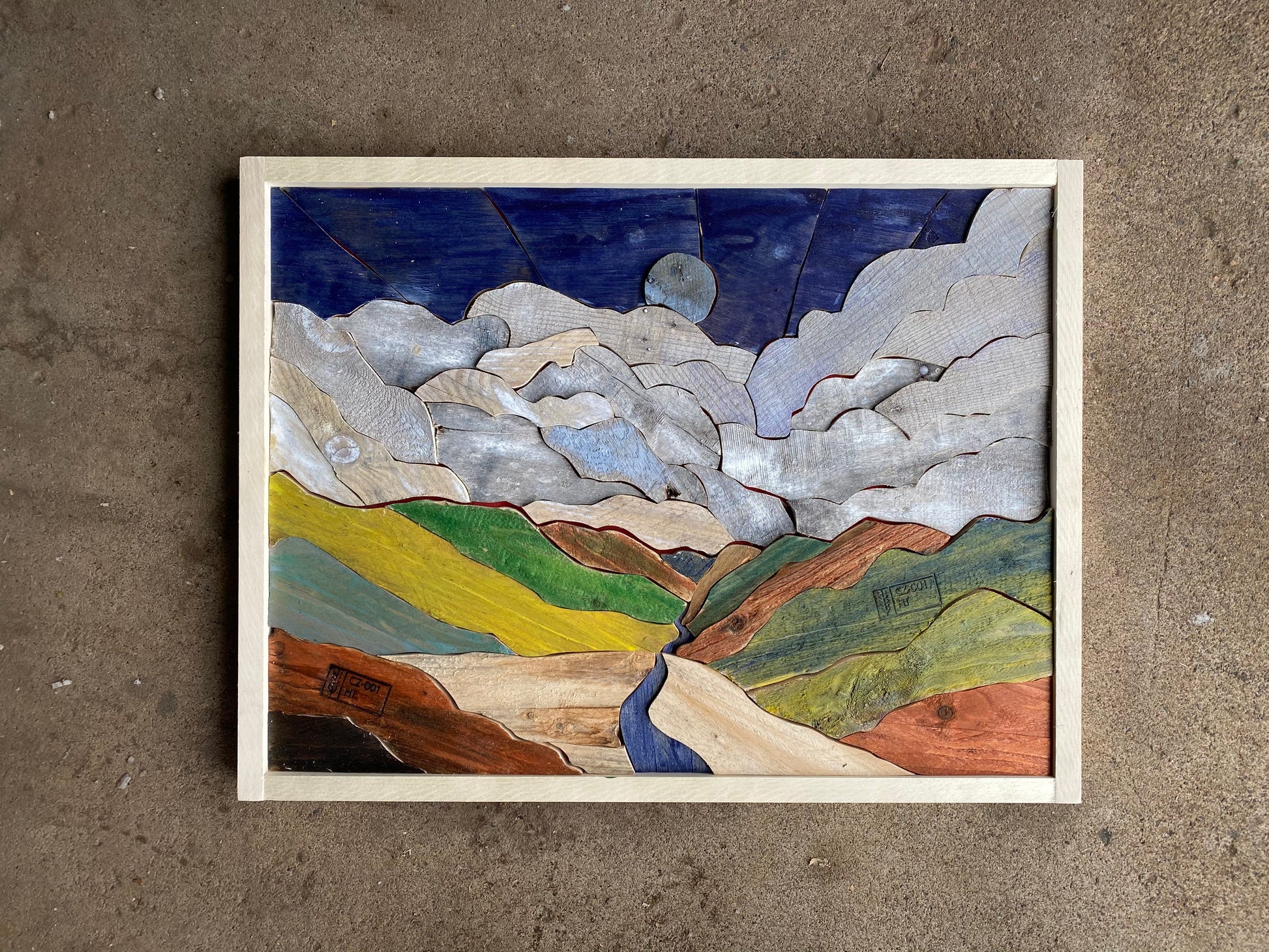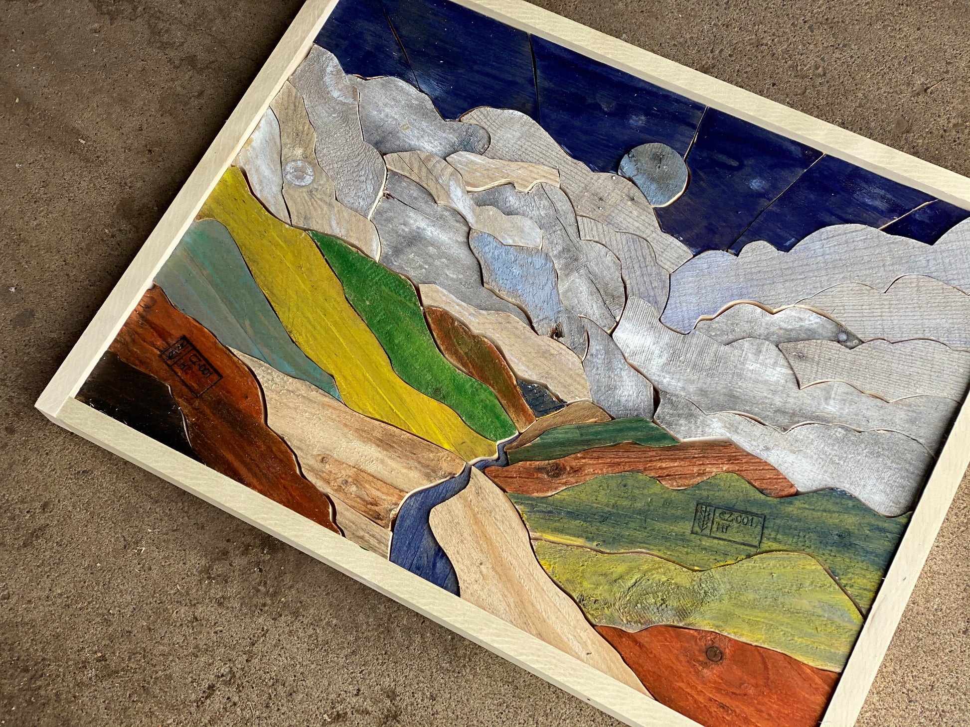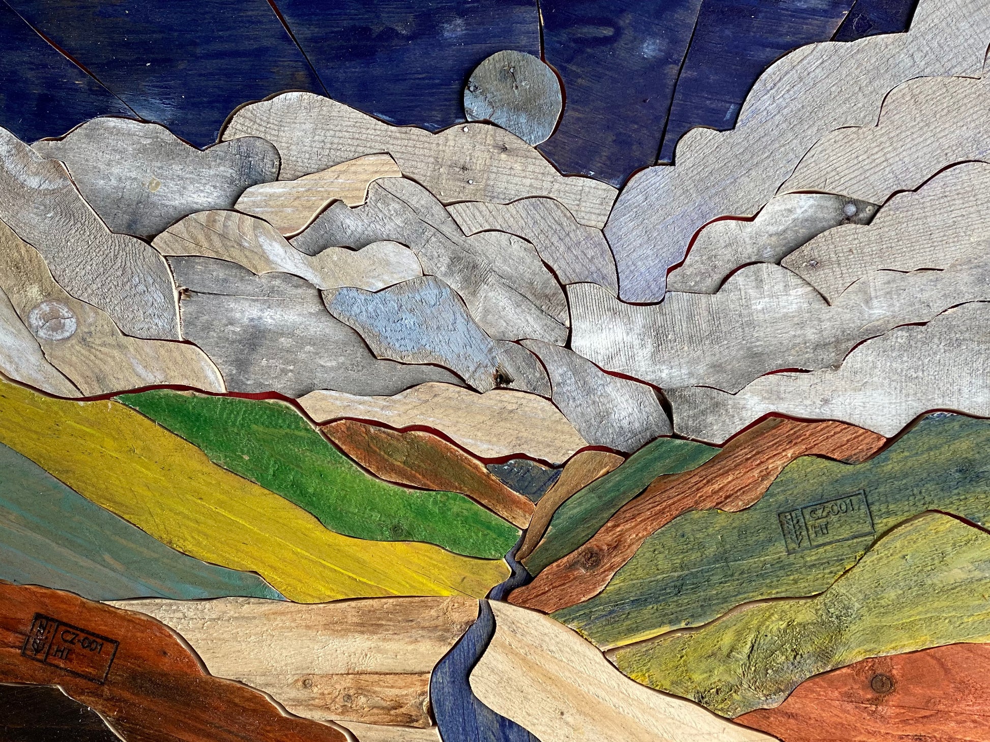 Each statement piece is an original. There are no shortcuts in the process. Each work is created with dozens to hundreds of handcrafted pieces of reclaimed lumber.