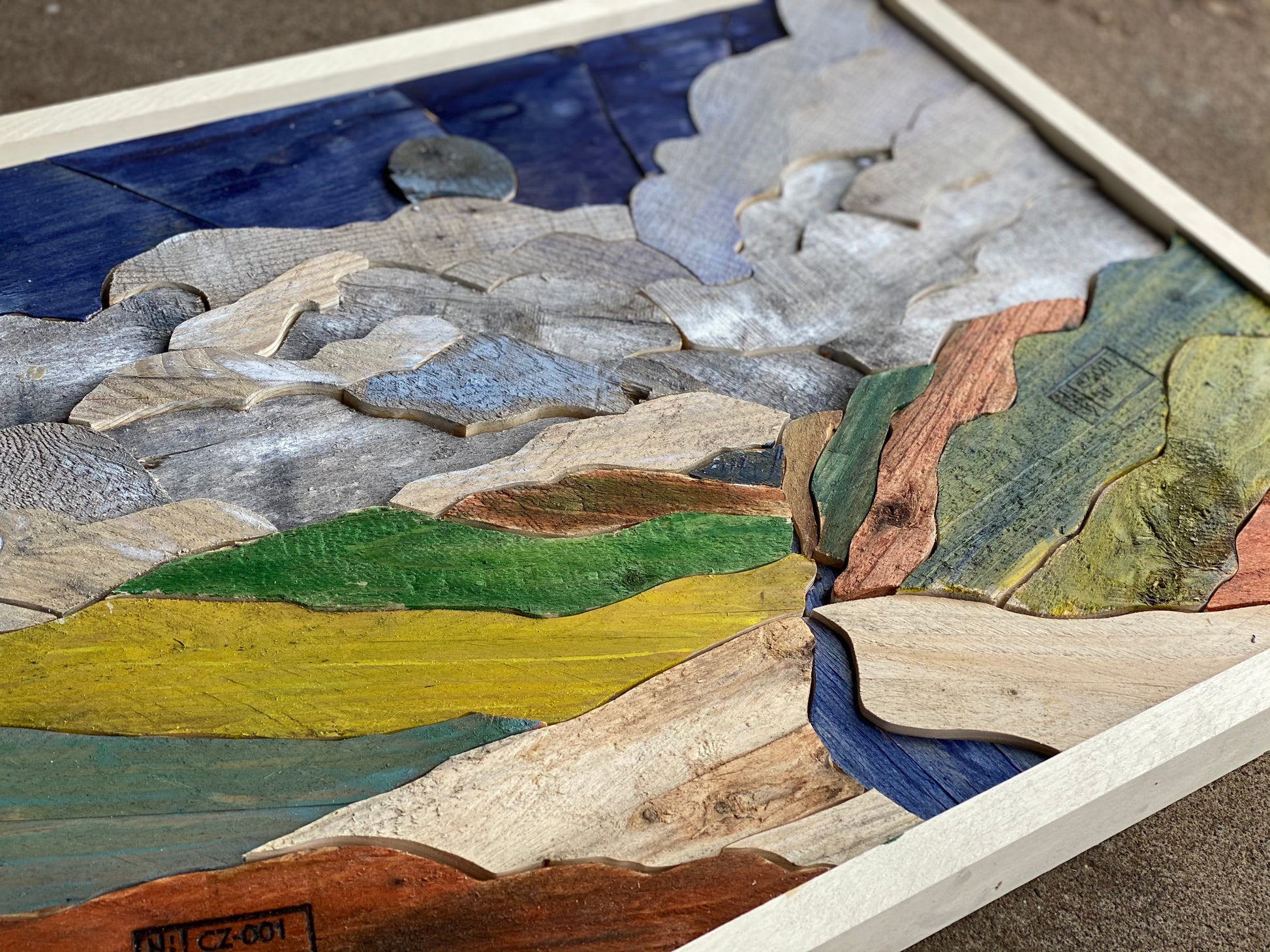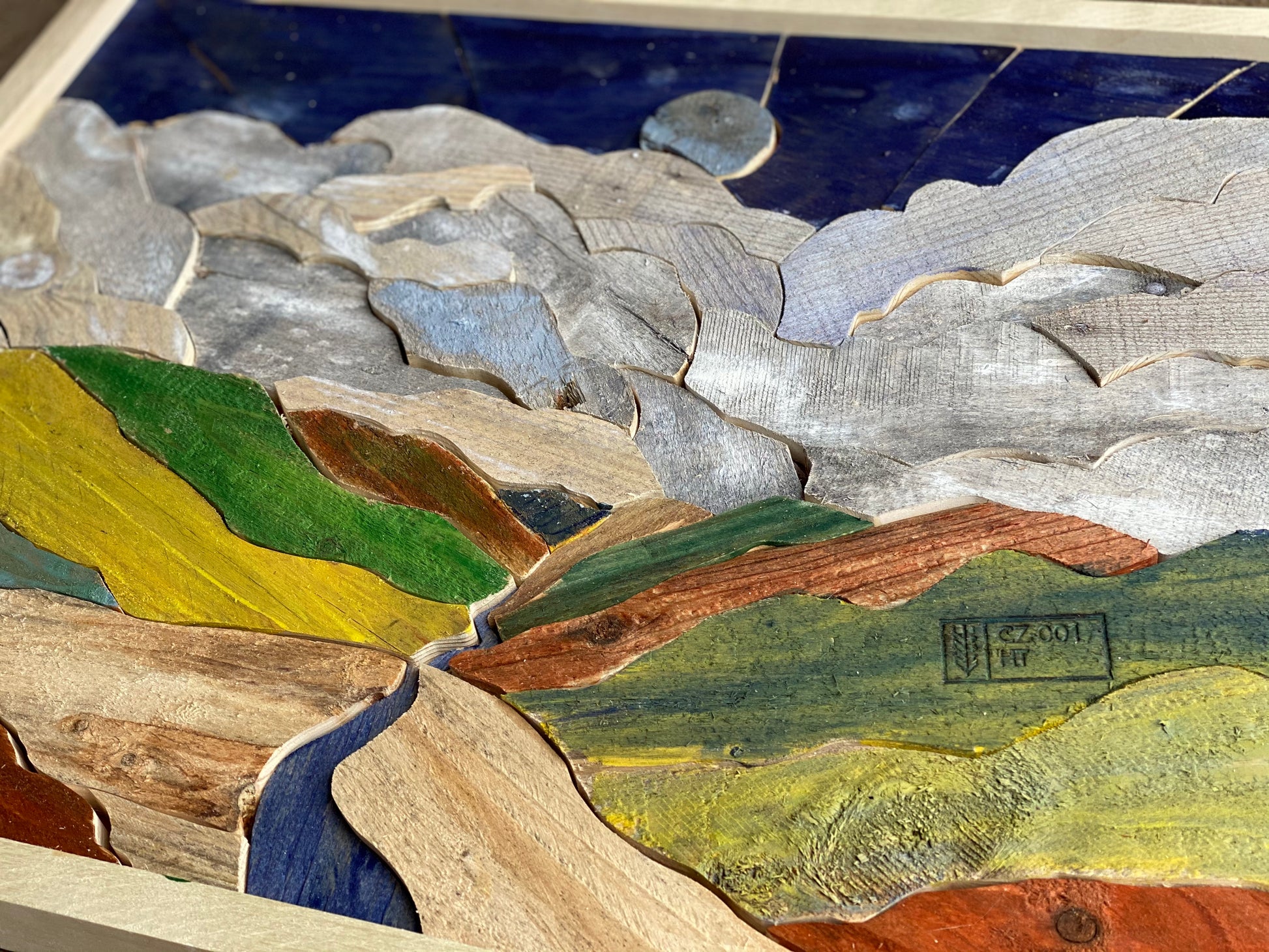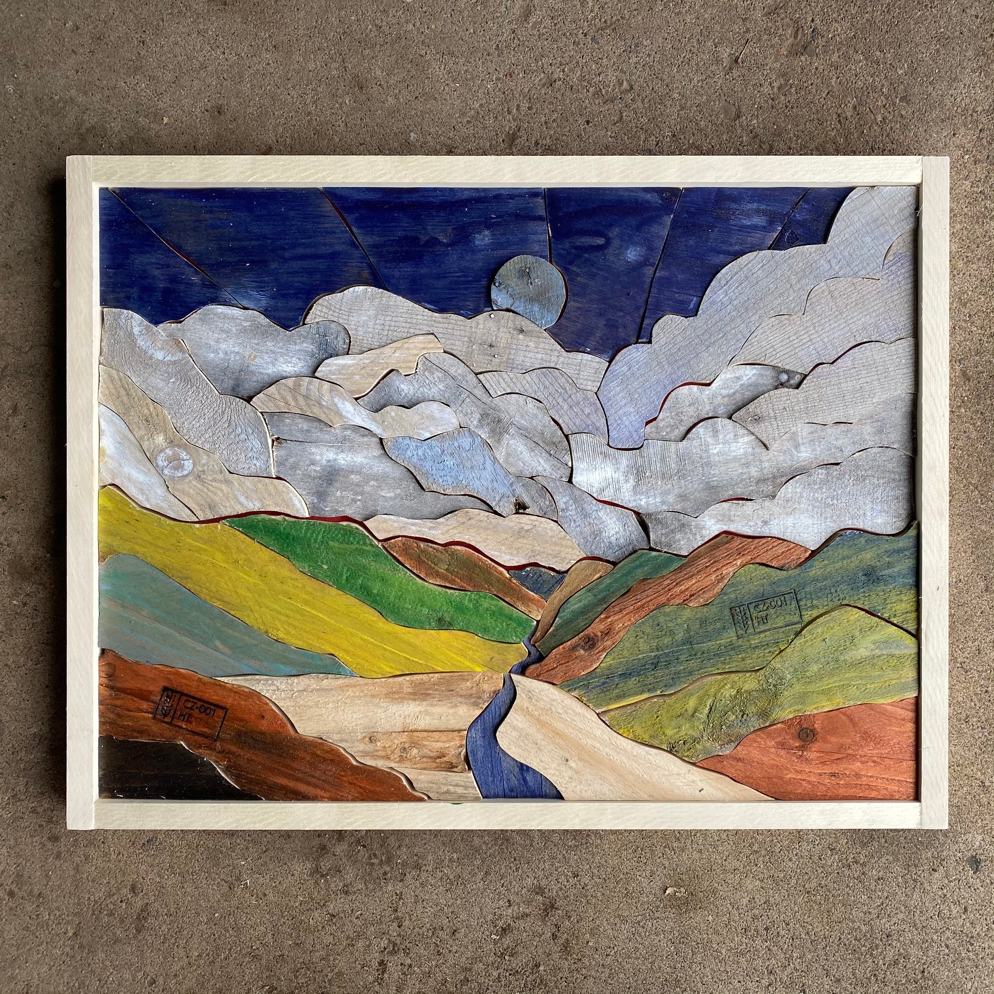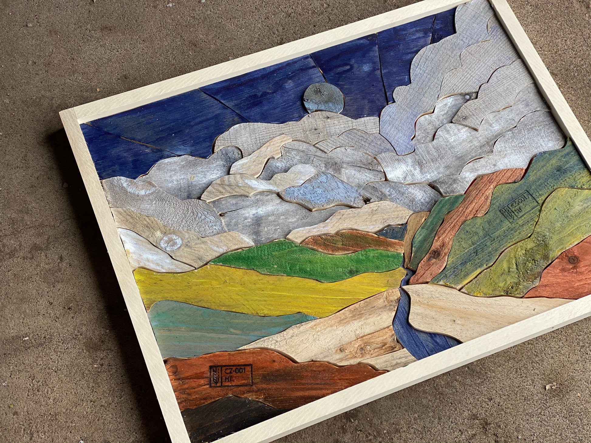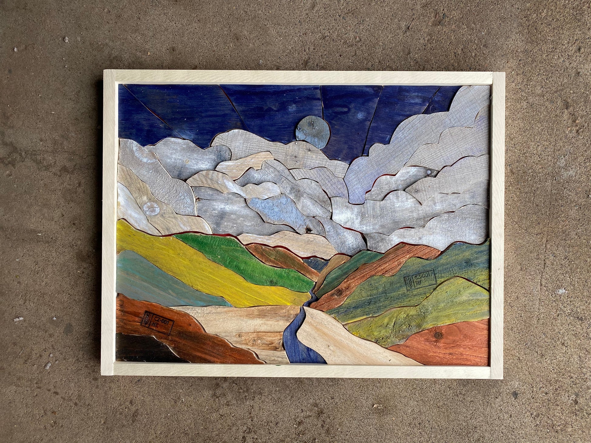 Each statement piece is an original. There are no shortcuts in the process. Each work is created with dozens to hundreds of handcrafted pieces of reclaimed lumber.
