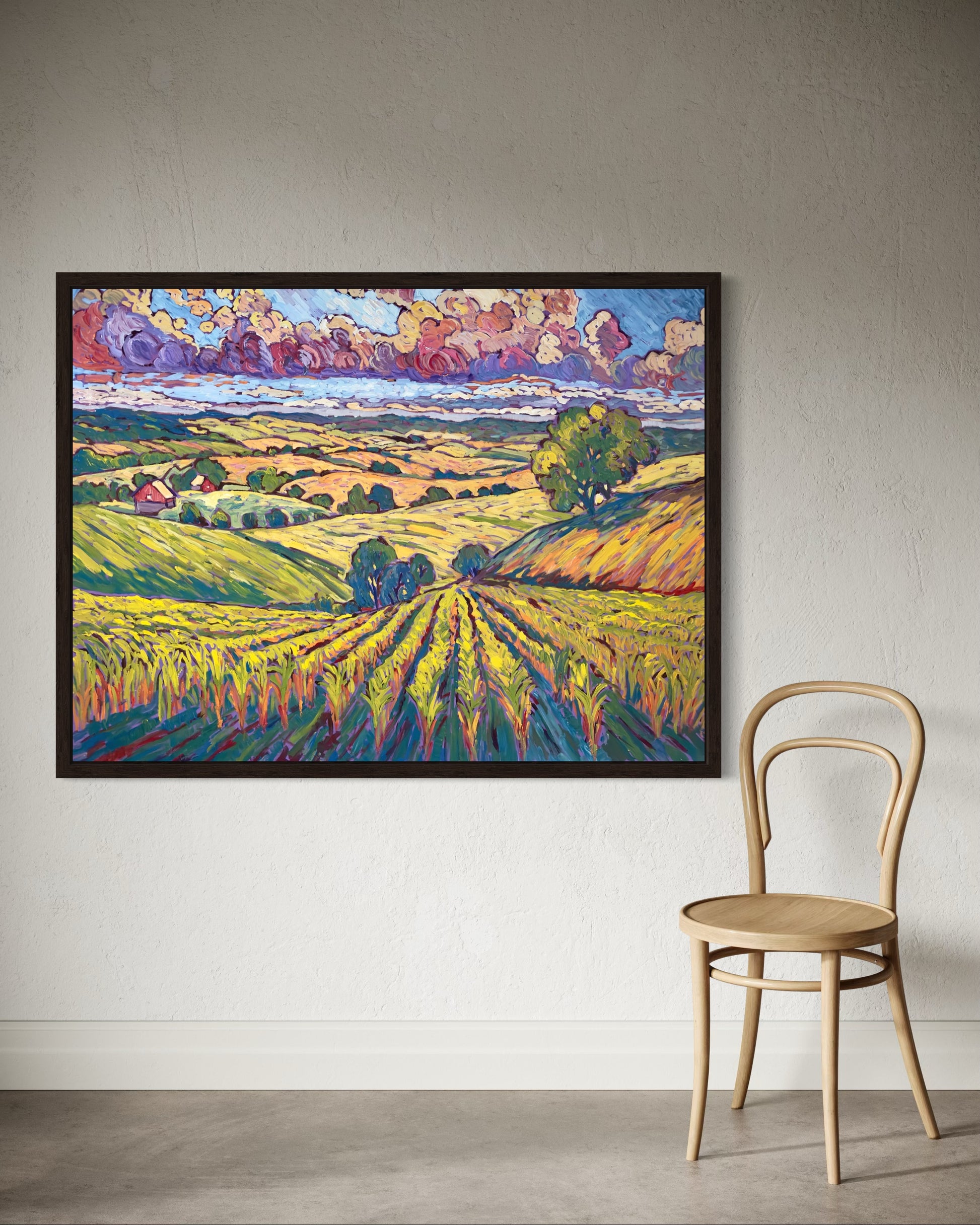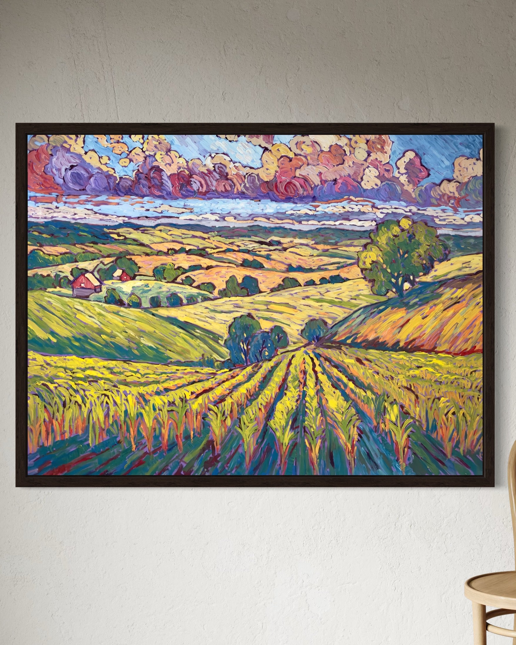 At 36x48", this painting carries a presence as expansive as the fields it portrays—offering a moment of quiet reverence for the rhythm of seasons and the beauty of the heartland. Frame not included, allowing you to select the finish that best suits your space.