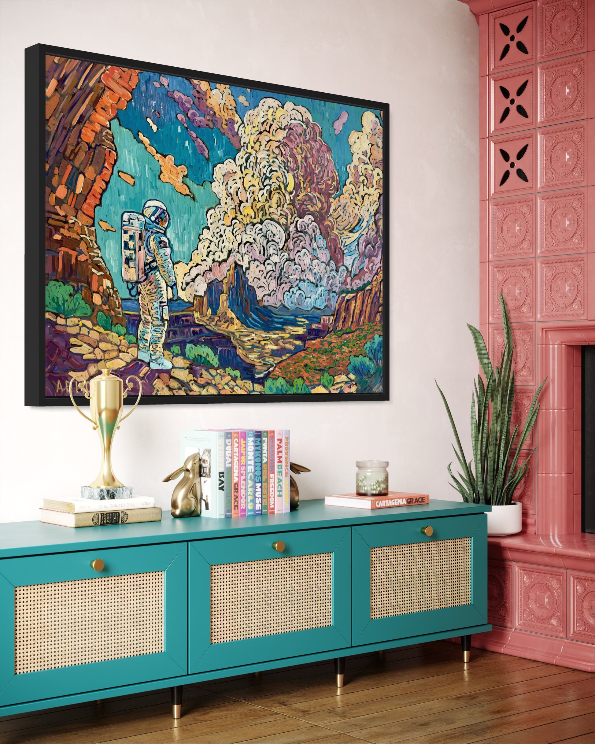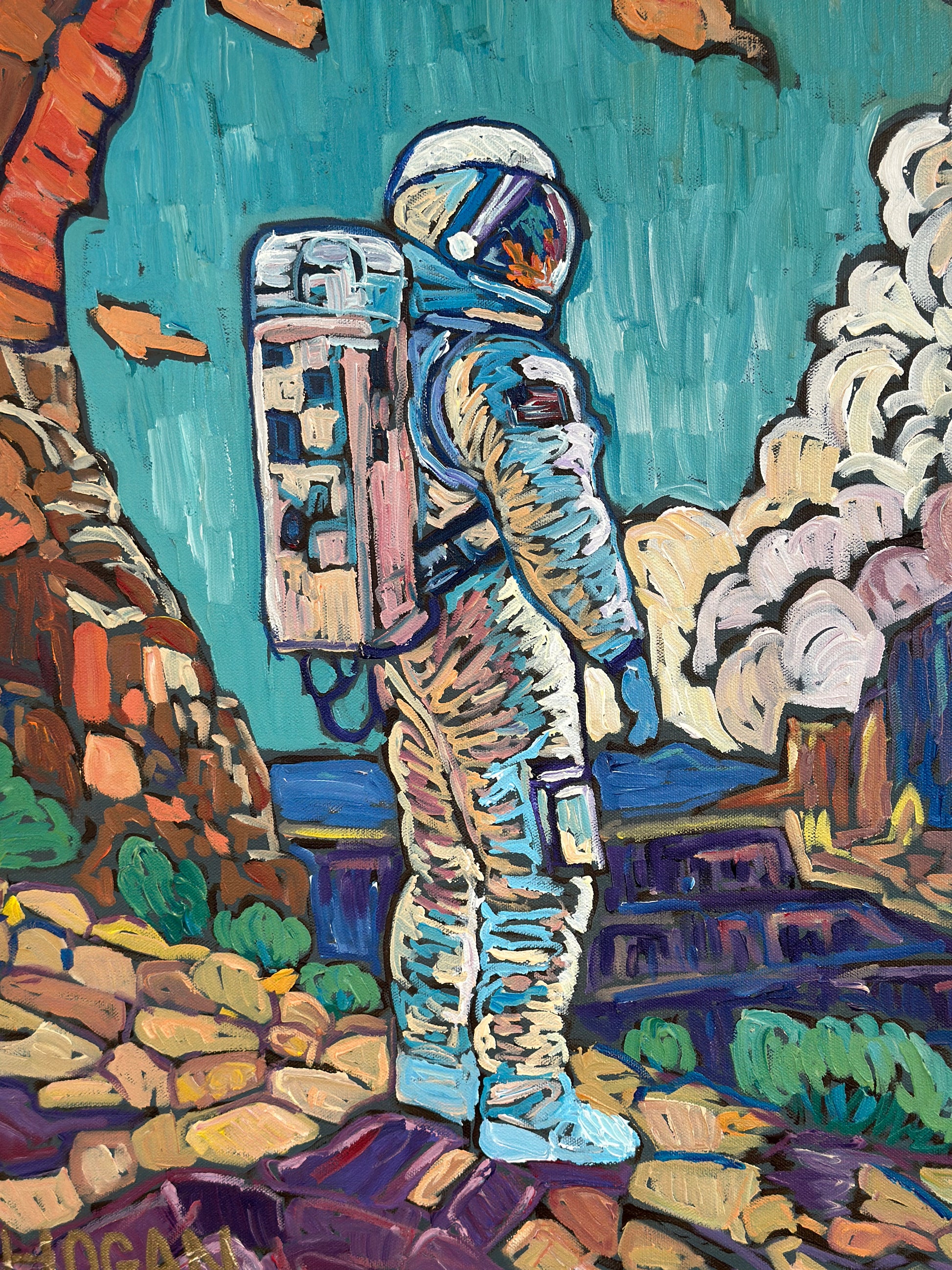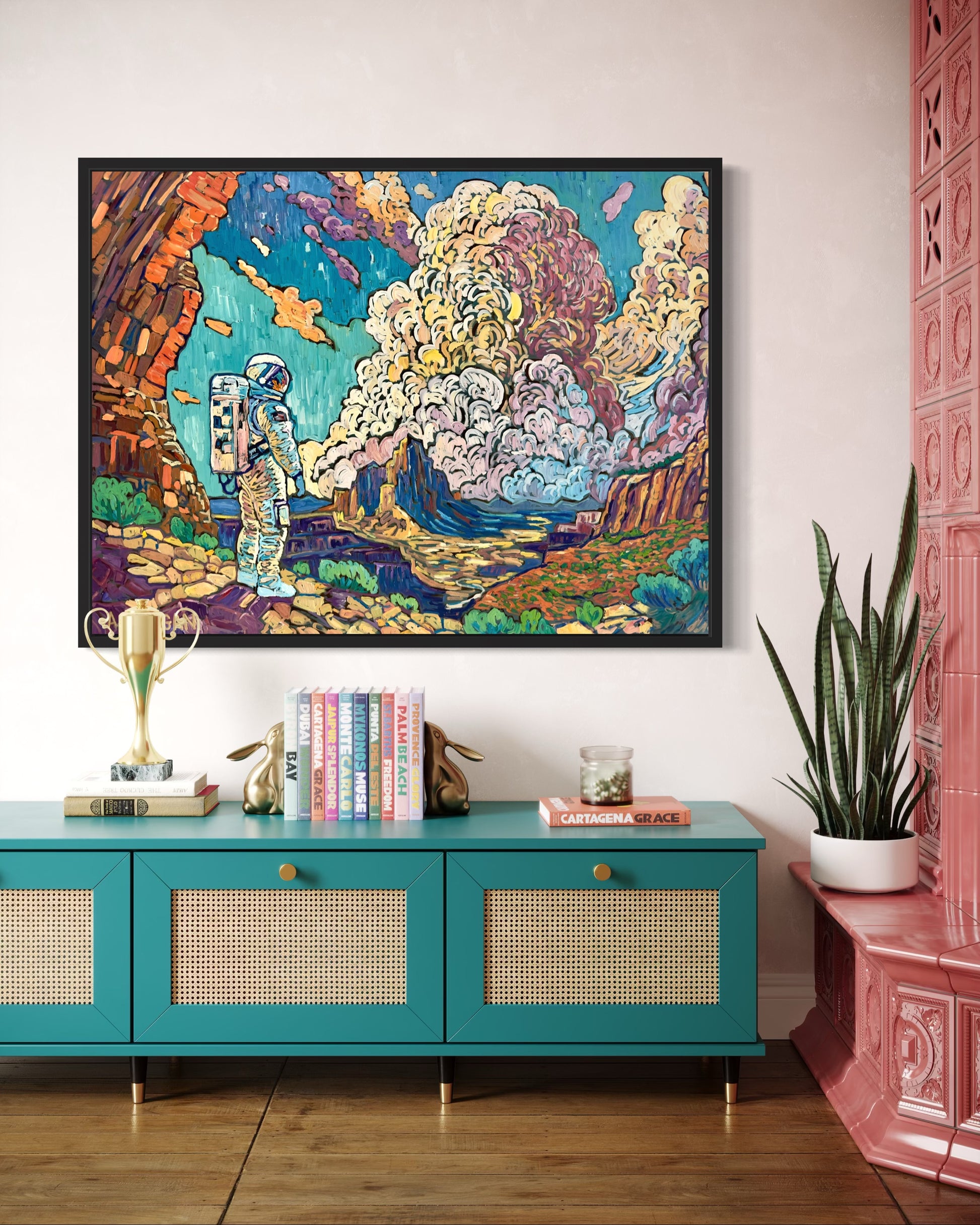 Astronaut Alice stood on the edge of a red rock bluff, the land unfurling before her like a worn and holy story—layer after layer of canyon, mesa, and wind-carved stone.