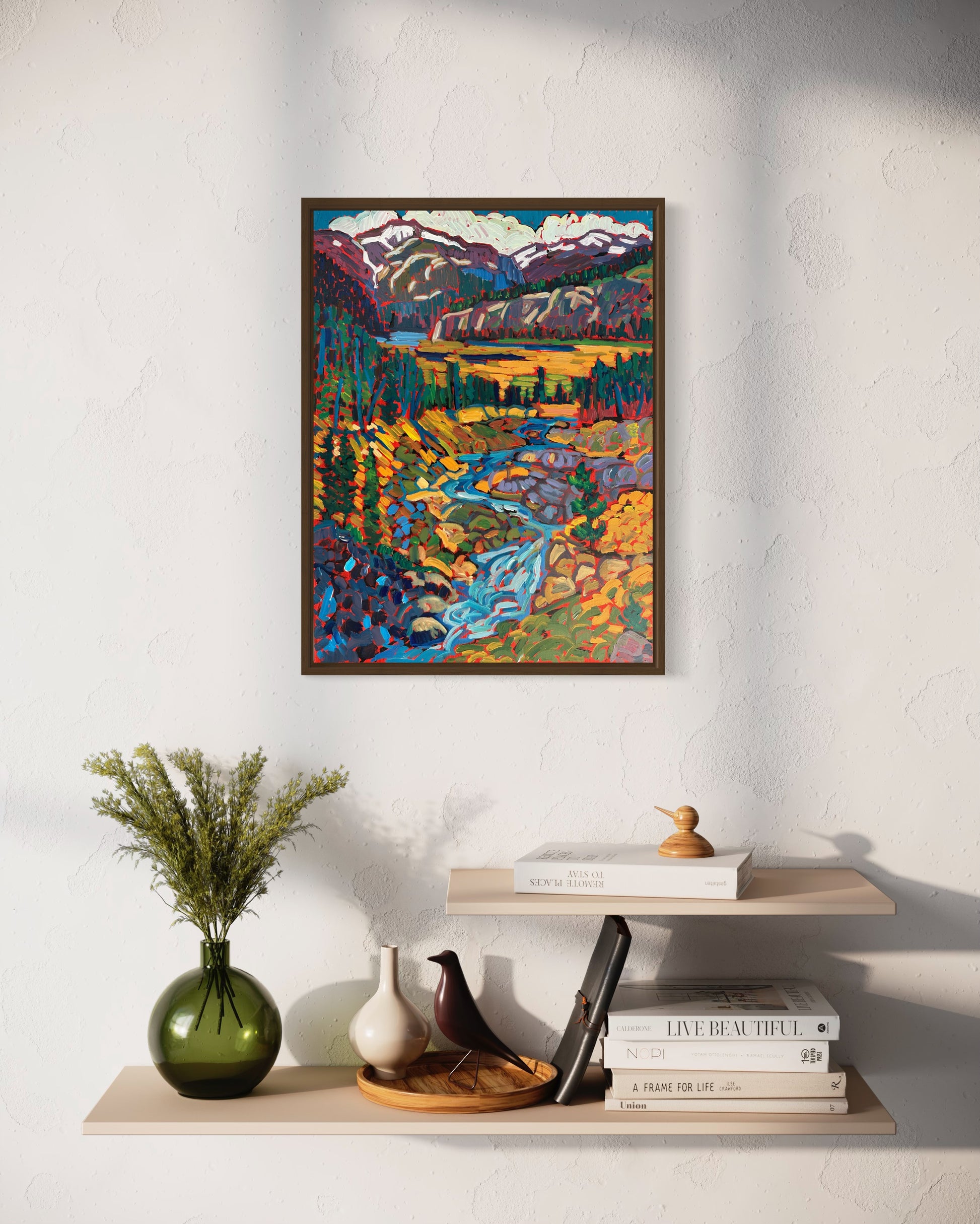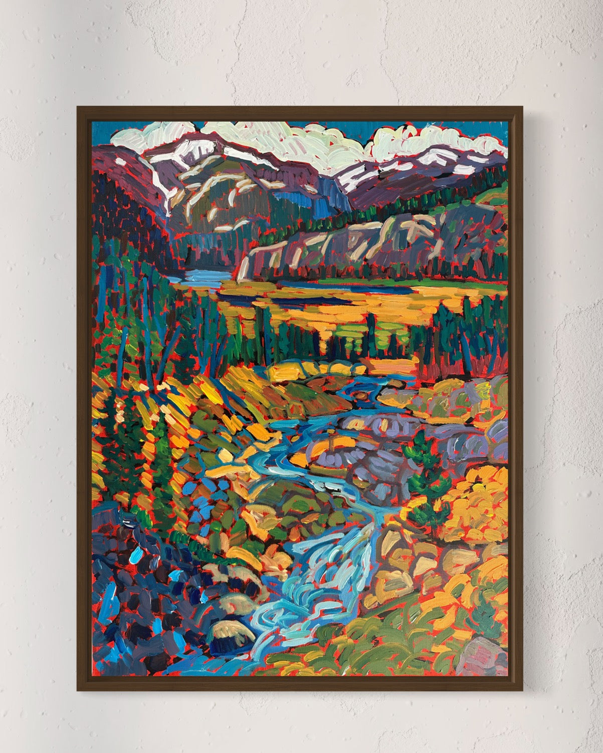 Across an 18x24" canvas, the soul of Yellowstone bursts forth in a vibrant display of impasto mastery. The painting captures the park's kaleidoscope of wonders—geothermal marvels, meadows teeming with life, and the majestic grandeur of its iconic peaks. Each textured stroke evokes the park's dynamic energy, an impressionistic symphony narrating Yellowstone's untamed grandeur. In this masterpiece, Yellowstone's essence emerges, echoing tales of primal landscapes and nature's raw, untamed spirit, inviting all to wander through its mesmerizing realms of wonder and awe.