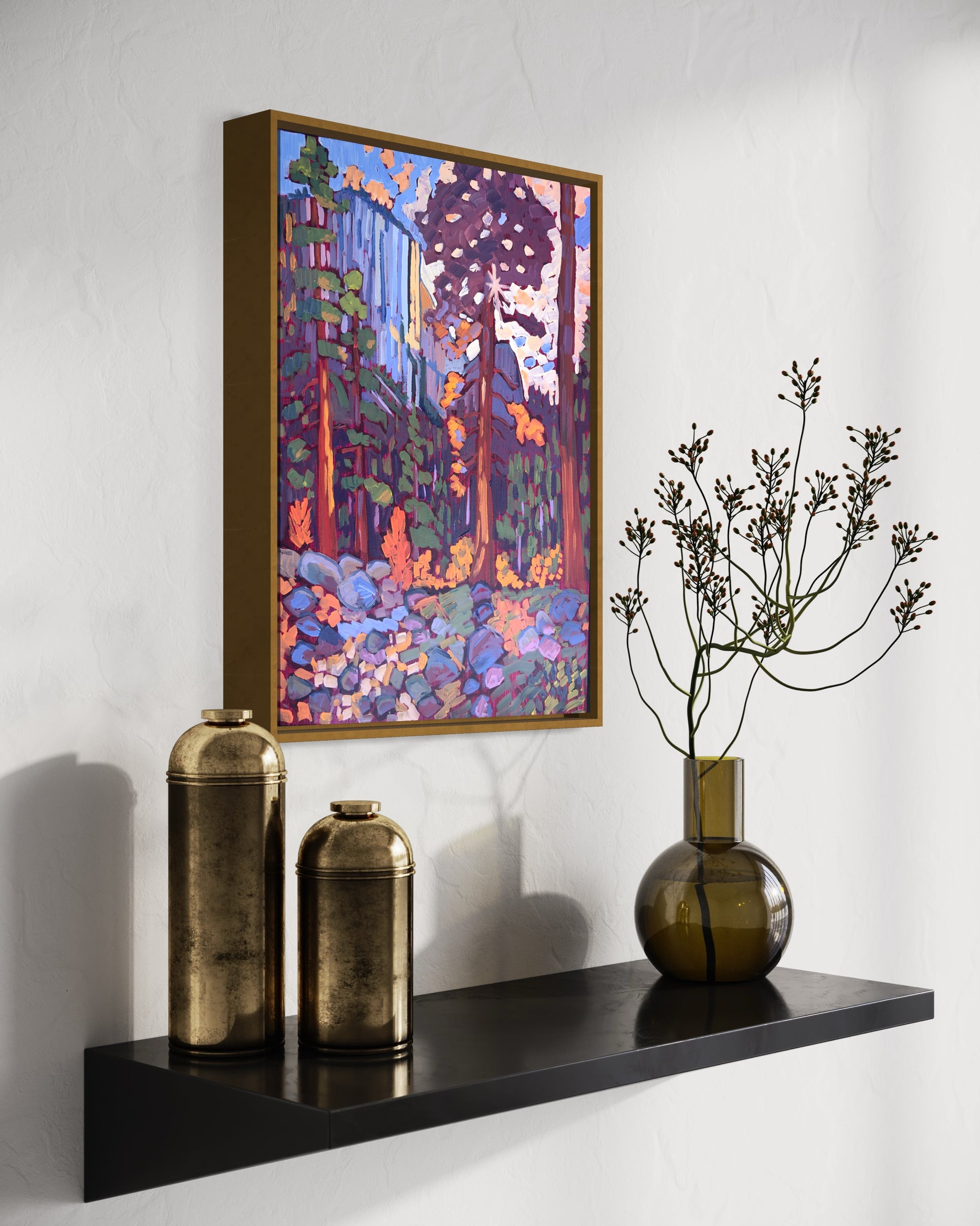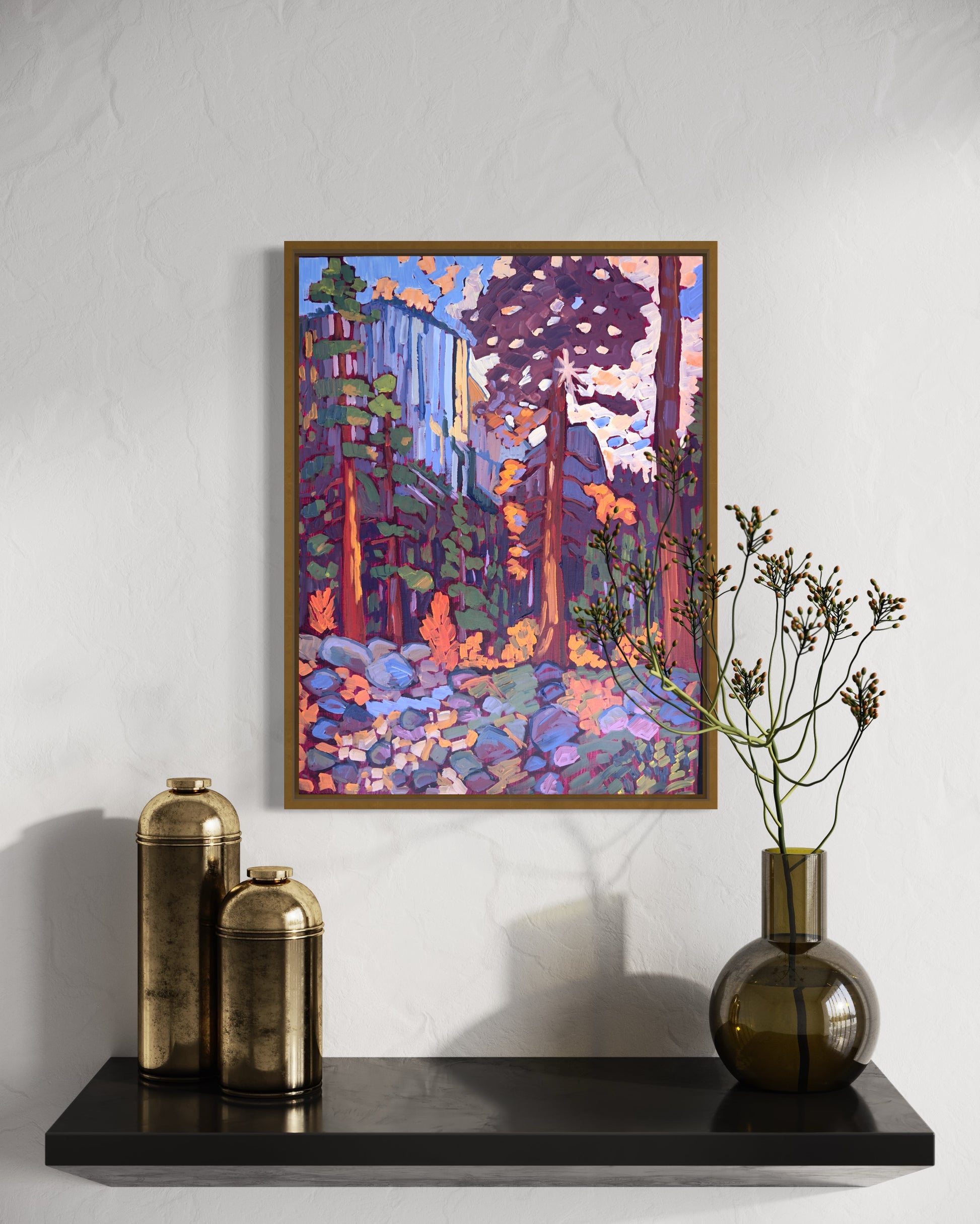 The 2-inch gallery canvas adds depth and presence to the artwork, allowing the viewer to immerse themselves in the beauty and majesty of Yosemite. Whether displayed as a focal point in a room or as part of a collection, this painting invites you to experience the awe-inspiring wonder of Yosemite National Park, celebrating its timeless natural beauty.